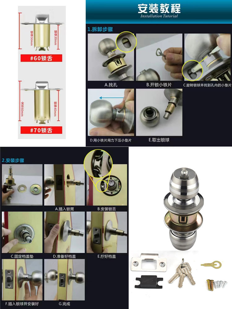 5831 стальной двойной сферический дверной замок из нержавеющей стали старомодный универсальные дверные замки для ванной комнаты круглый шар завод прямой продажи замок