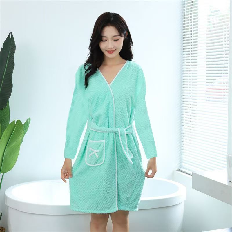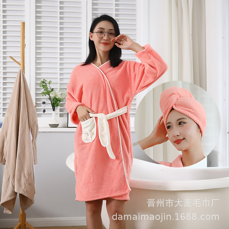 Производитель: индивидуальный коралловый велюровый халат для женщин, утолщенный банный халат для осени и зимы, впитывающий, мягкий и удобный для ношения.
