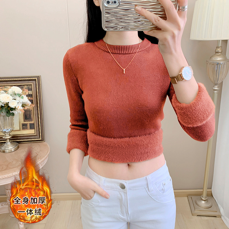Высокое качество осенний и зимний бархатный свитер женский толстый бархат