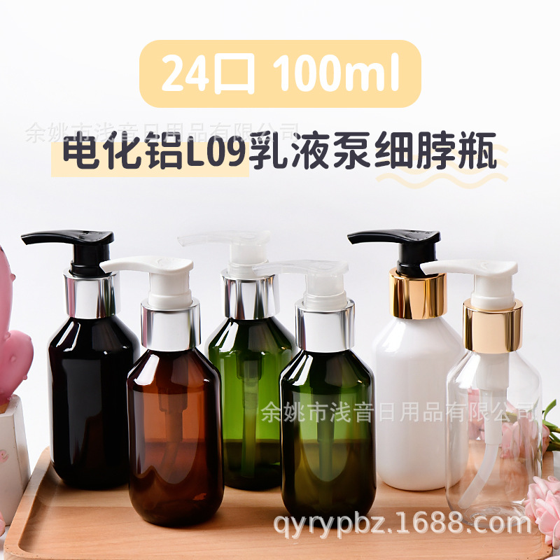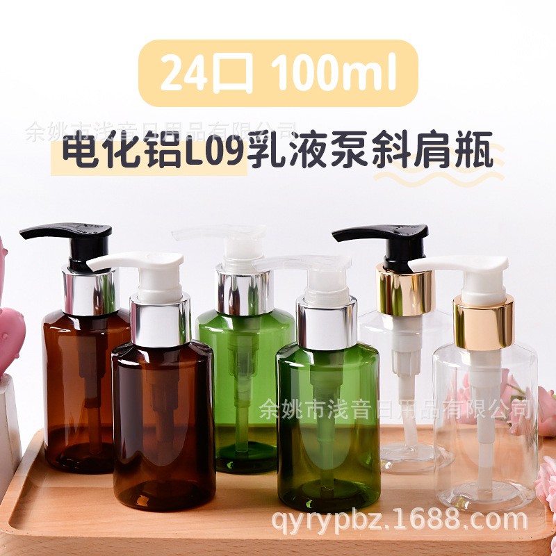 100 мл плоский туник с тонким плечом косой плечевой pet пластиковая бутылка 24 зуба L09 электрохимический алюминиевый эмульсионный насос