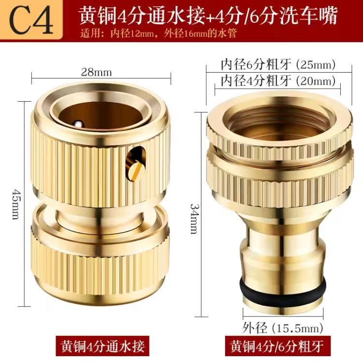 Медный шланг разъем 4 минуты стандартная резьба Подъем воды Автоматическая стиральная машина кран Автомойка разъем водяного пистолета