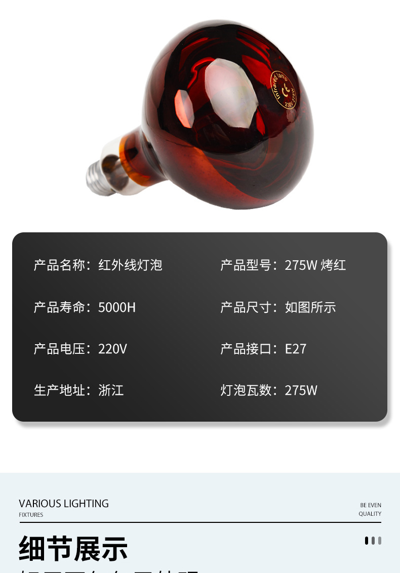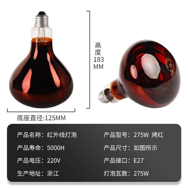 Инфракрасная лампа 275 Вт для домашнего обогрева, косметологии, ухода за телом, терапии красным светом, водонепроницаемая и взрывозащищенная, от производителя