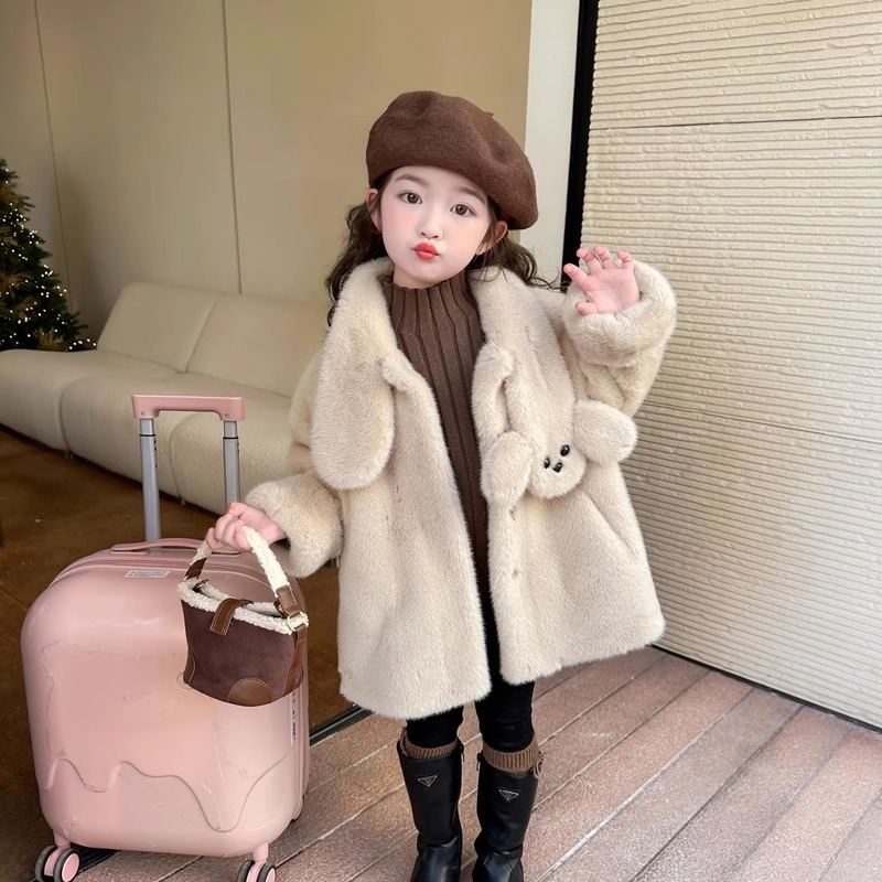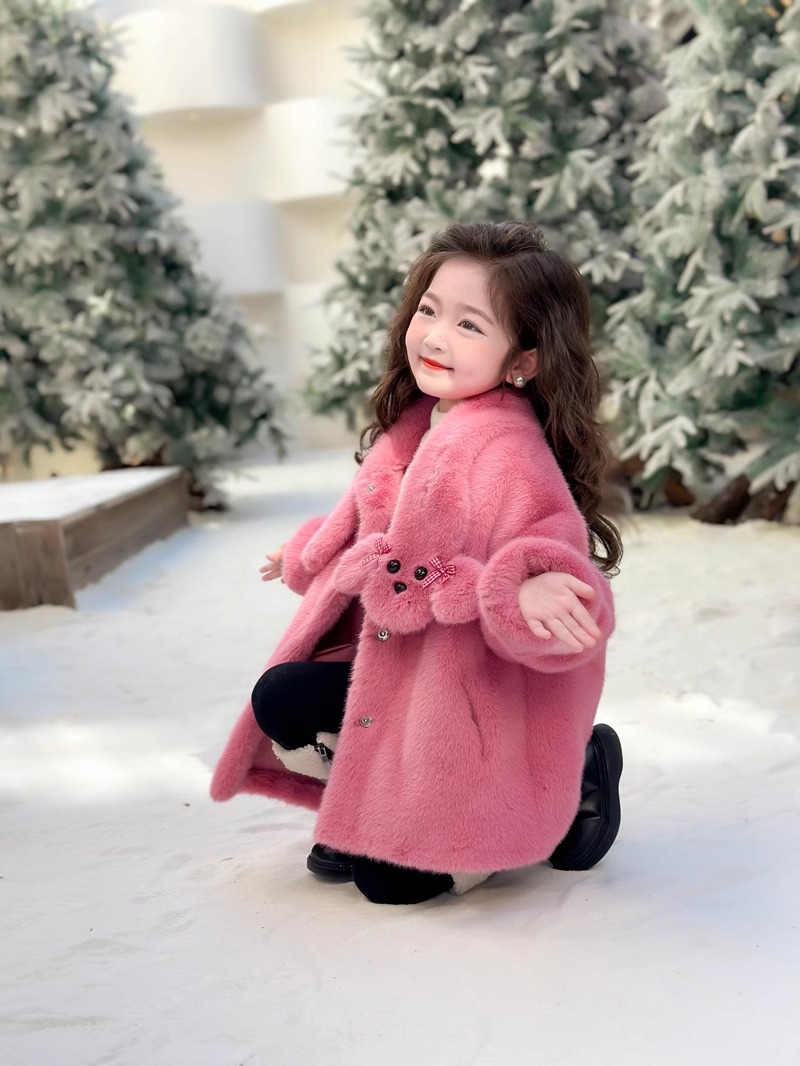 Зимняя новинка 2025: Теплая куртка для девочек из искусственного меха, утепленная, с имитацией норки, на хлопковой основе