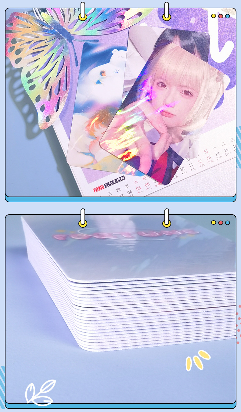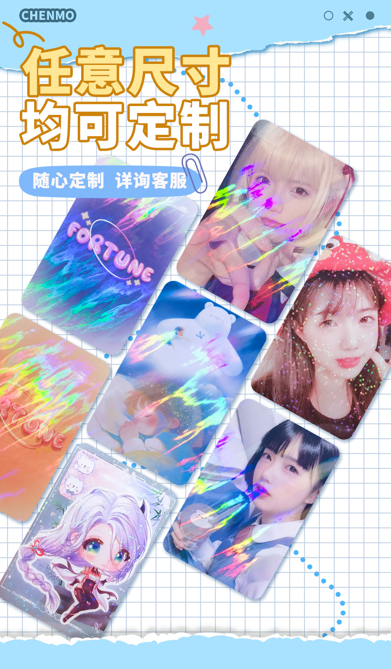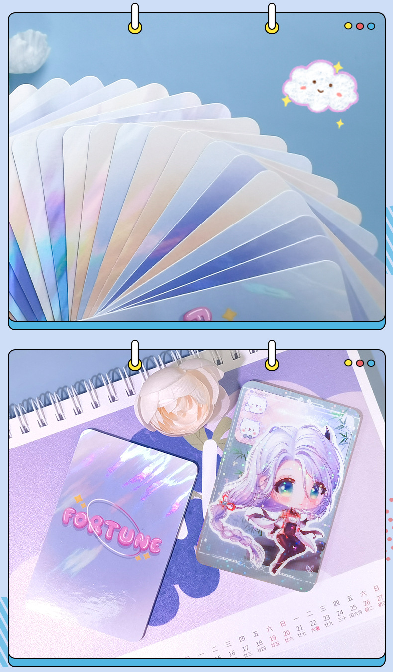 Заказные самодельные альбомные карточки с звёздами и аниме-карточками с эффектом чернильной волны, гороховым лазерным покрытием и закруглёнными углами.