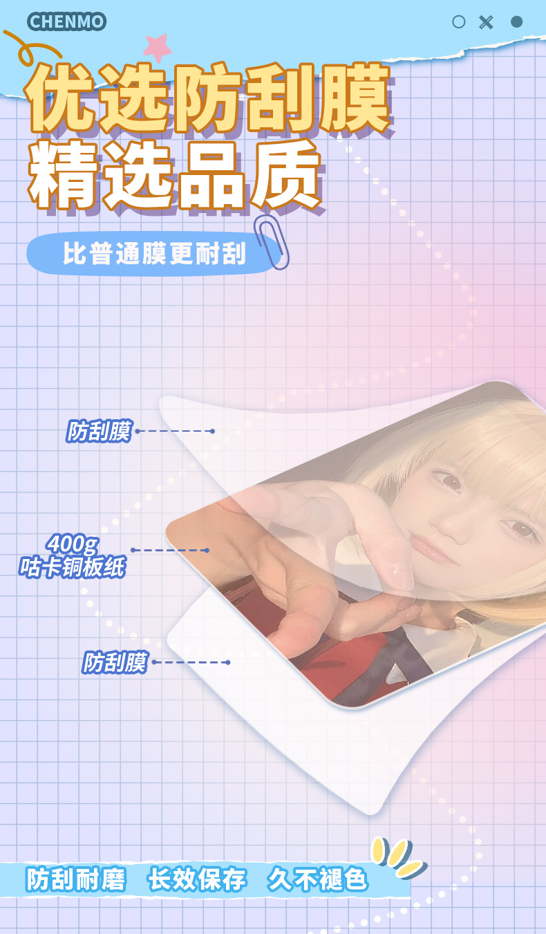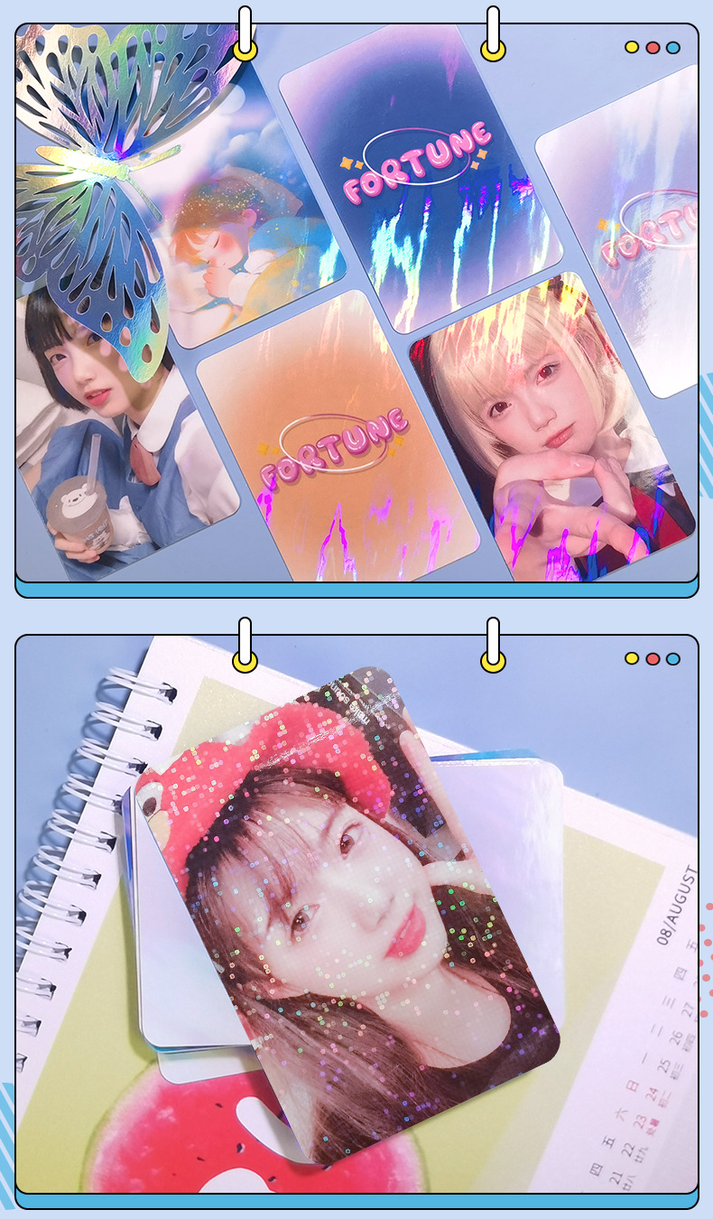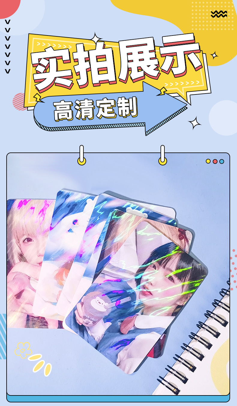 Заказные самодельные альбомные карточки с звёздами и аниме-карточками с эффектом чернильной волны, гороховым лазерным покрытием и закруглёнными углами.