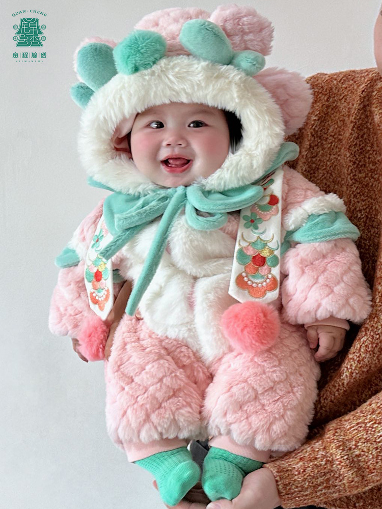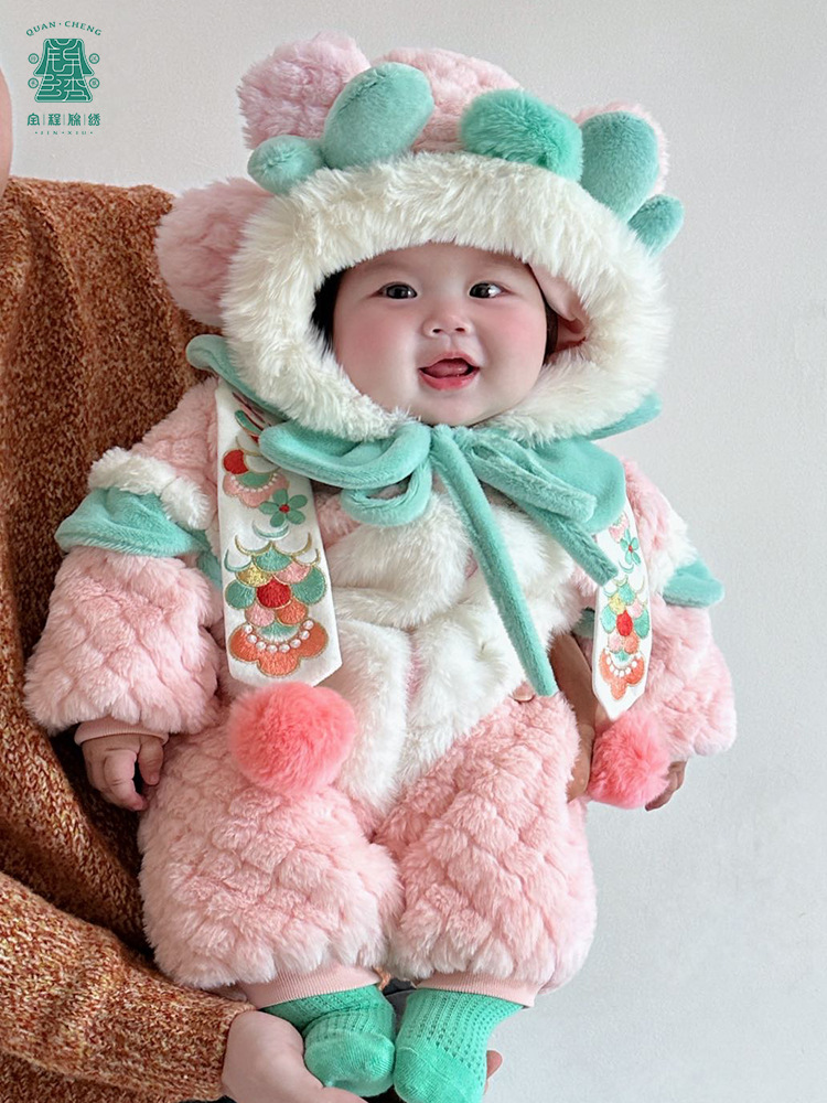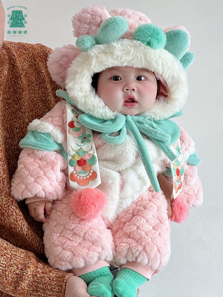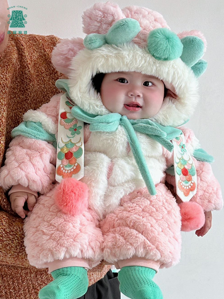 Зимнее платье для девочки-однолетки династии Хань, детский комбинезон, новогодний костюм для новорожденного, костюм для выхода в свет