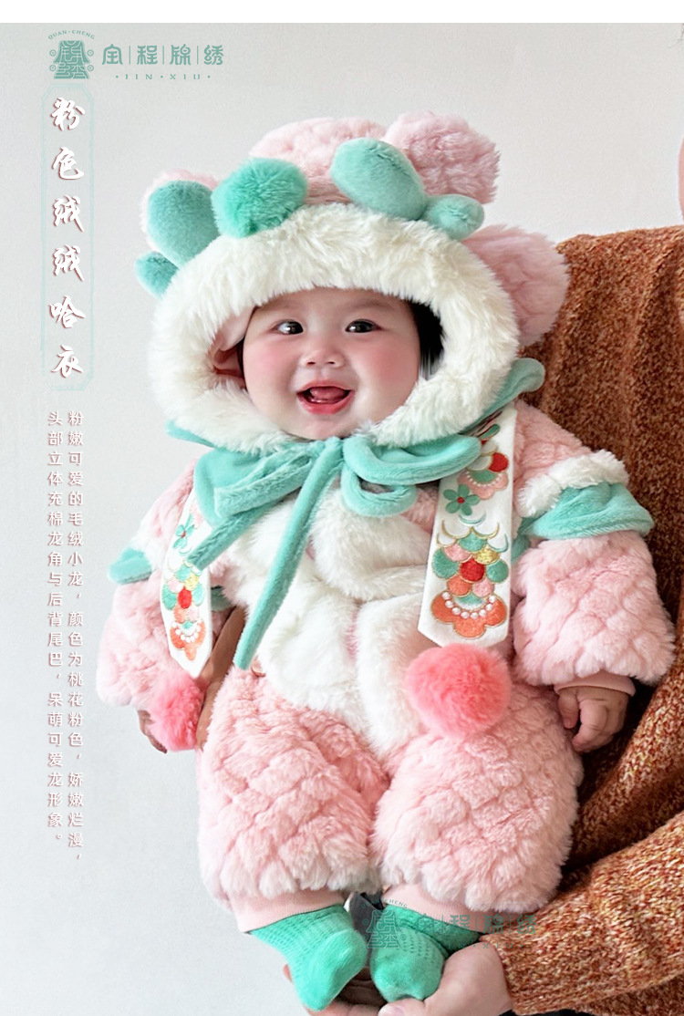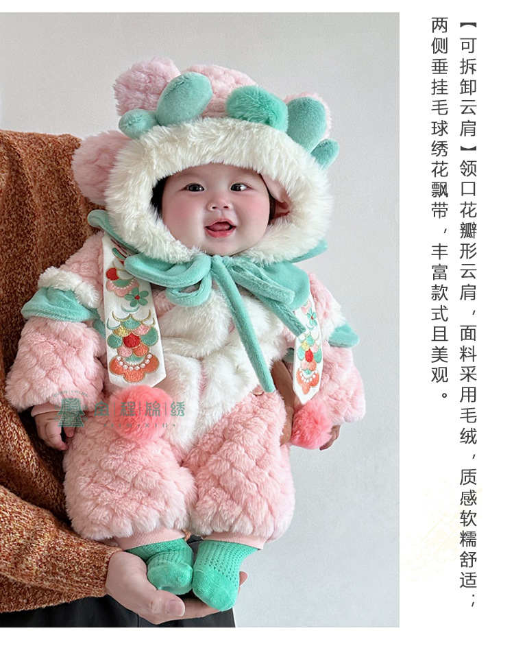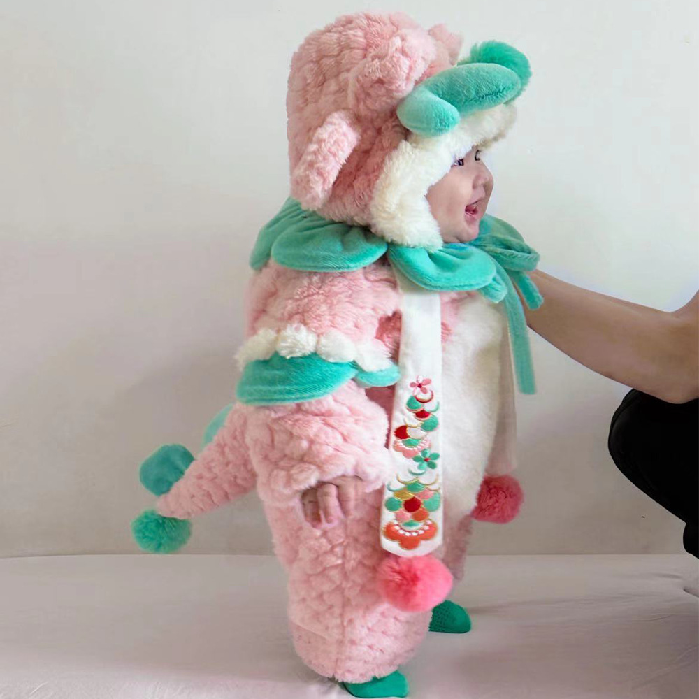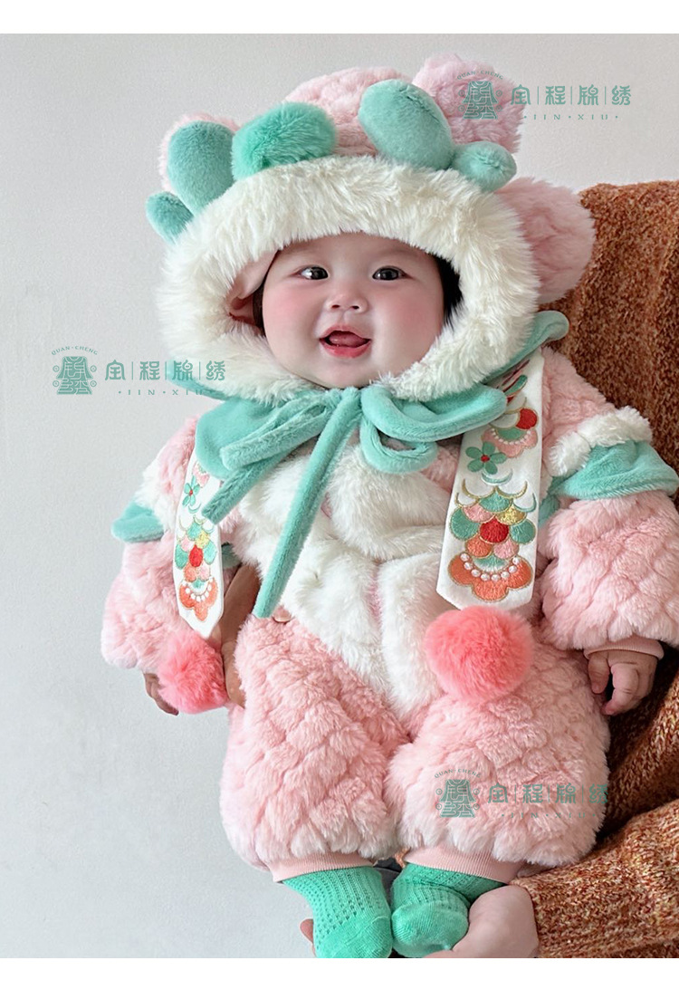 Зимнее платье для девочки-однолетки династии Хань, детский комбинезон, новогодний костюм для новорожденного, костюм для выхода в свет