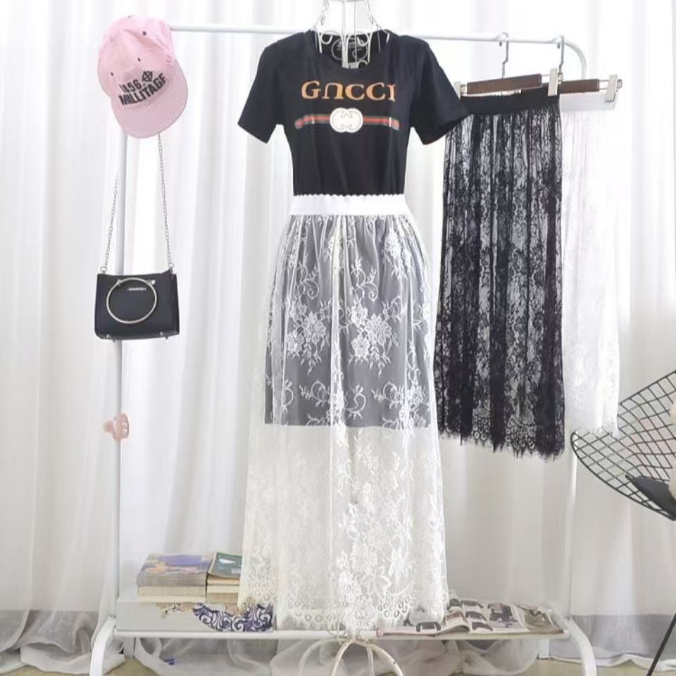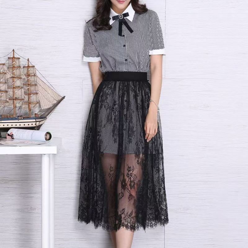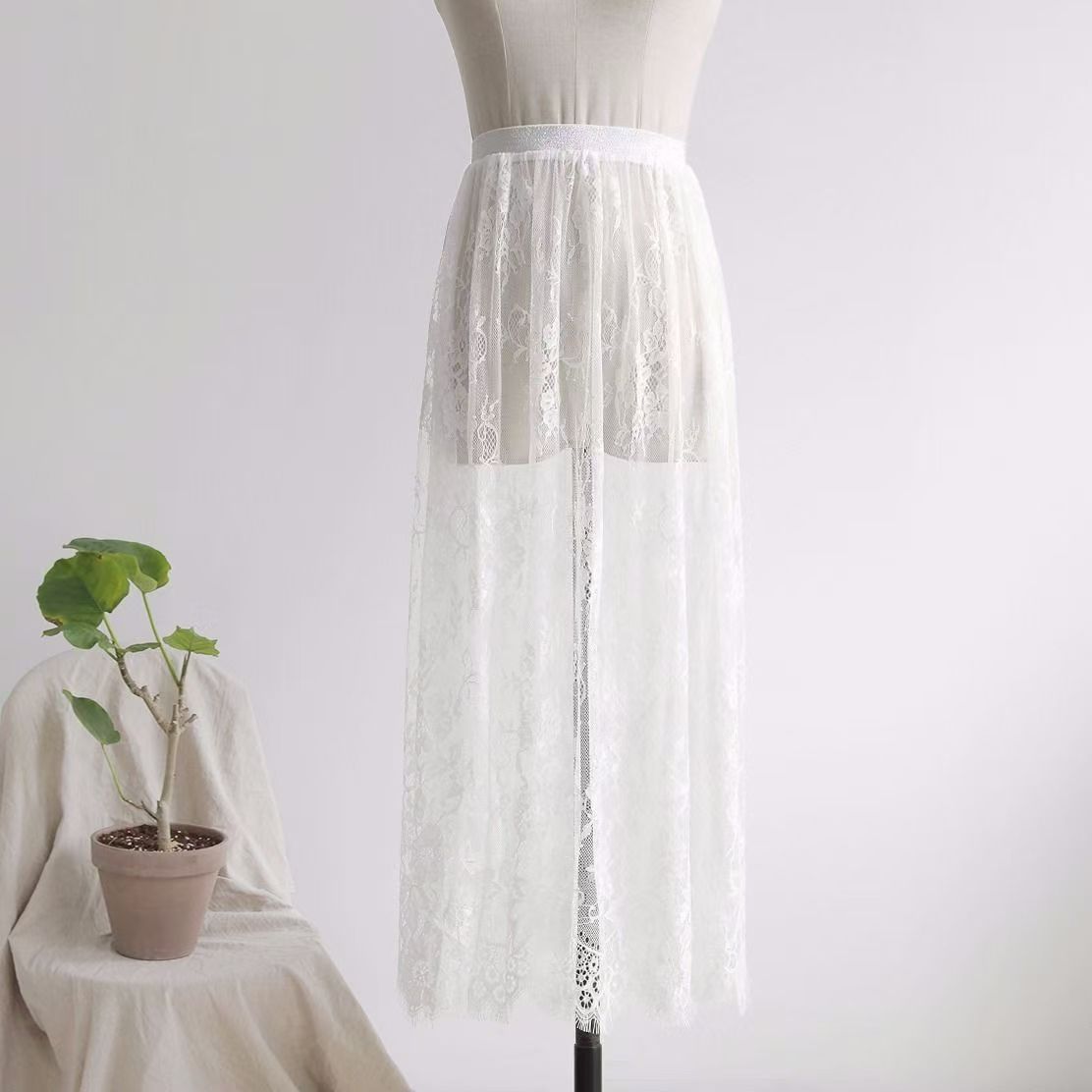 Белый чонсам с внутренней рубашкой кружевной юбкой-юбкой с длинным сетевым пряжей большого размера, дикий чонсам с черной юбкой
