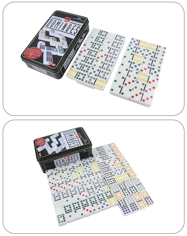 Двойной шестой 28 железный ящик; Набор Double Nine в жестяной коробке, 55 предметов; Двойной двенадцать 91 железная коробка