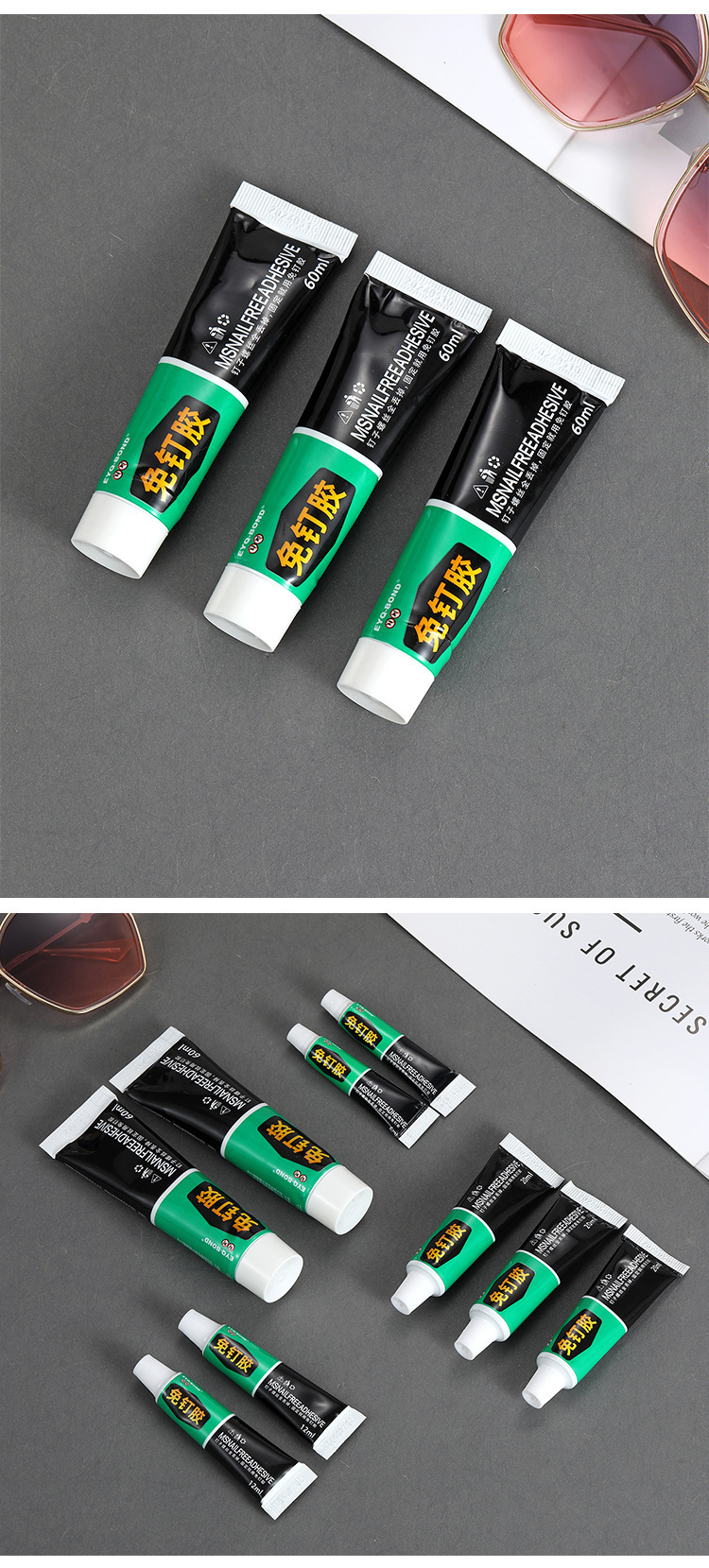 Клей без ногтей 6 мл (пробный размер); Клей без ногтей 12 мл (маленький размер для домашнего использования); Клей без ногтей 20 мл (для домашней версии большого размера); Клей без ногтей 60мл (коммерческая версия)