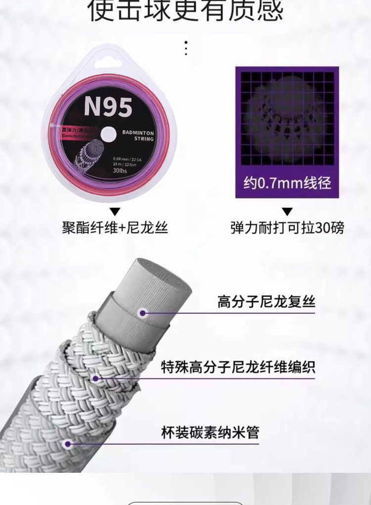Линия для ракетки для бадминтона N-95 сетка эластичная, долговечная и взрывоопасная