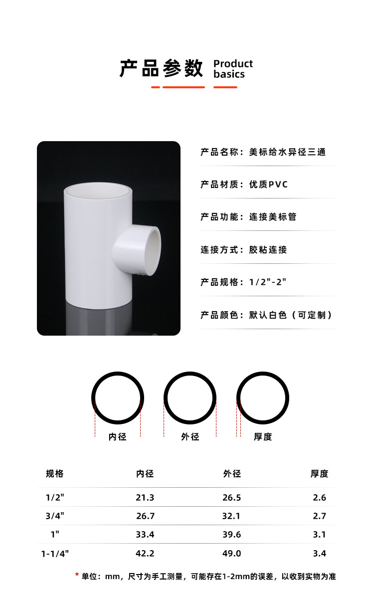 Американский стандартный белый тройник-редуктор для водоснабжения 3/4"*1/2" (360 штук/коробка); Американский стандартный белый тройник для снижения давления воды 1"*1/2" (225 штук/коробка); Американский стандарт, белый тройник-редуктор 1" x 3/4" для водоснабжения (200 штук/коробка); Американский стандартный белый тройник-редуктор для водоснабжения 1-1/4"*3/4" (152 шт./коробка); Американский стандарт, белый тройник-редуктор 1-1/4" для водоснабжения (130 штук/коробка); Американский стандарт, белый тройник-редуктор 1-1/2" для водоснабжения (100 штук/коробка); Американский стандартный белый тройник-редуктор для водоснабжения 1-1/2"*1-1/4" (85 штук/коробка); Американский стандартный белый тройник-редуктор для водоснабжения 2"*1-1/4" (85 штук/коробка); Американский стандартный белый тройник-редуктор для водоснабжения 2"*1-1/2" (51 шт./коробка); Американский стандартный белый тройник-редуктор для водоснабжения 2-1/2"*1-1/2" (50 штук/коробка); Американский стандартный белый тройник-редуктор для водоснабжения 2-1/2"*2" (44 шт./коробка); Американский стандартный белый тройник для снижения давления воды 3"*2" (32 штуки/коробка); Американский стандарт, белый, тройник-редуктор 3" x 2-1/2" (28 шт./коробка); Американский стандартный белый тройник-редуктор для водоснабжения 4"*2-1/2" (24 штуки/коробка); Американский стандарт, белый редукционный тройник 4" x 3" для водоснабжения (18 штук/коробка); Американский стандартный серый тройник-редуктор для водоснабжения 3/4"*1/2" (360 штук/коробка); Американский стандартный серый тройник-редуктор для водоснабжения 1"*1/2" (225 штук/коробка); Американский стандартный серый тройник-редуктор для водоснабжения 1"*3/4" (200 штук/коробка); Американский стандартный серый тройник-редуктор для водоснабжения 1-1/4"*3/4" (152 шт./коробка); Американский стандартный серый тройник-редуктор для водоснабжения 1-1/4"*1" (130 штук/коробка); Американский стандарт, серый редукционный тройник 1-1/2" x 1" для водоснабжения (100 штук/коробка); Американский стандартный серый редукционный тройник для водоснабжения 1-1/2"*1-1/4" (85 штук/коробка); Американский стандартный серый тройник-редуктор для водоснабжения 2"*1-1/4" (85 штук/коробка); Американский стандартный серый тройник-редуктор для водоснабжения 2"*1-1/2" (51 шт./коробка); Американский стандартный серый тройник-редуктор для водоснабжения 2-1/2"*1-1/2" (50 штук/коробка); Американский стандартный серый тройник-редуктор для водоснабжения 2-1/2"*2" (44 шт./; Американский стандартный серый тройник-редуктор для водоснабжения 3"*2" (32 шт./коробка); Американский стандартный серый тройник-редуктор для водоснабжения 3"*2-1/2" (28 штук/коробка); Американский стандартный серый тройник-редуктор для водоснабжения 4"*2-1/2" (24 штуки/коробка); Американский стандартный серый тройник для снижения давления воды 4"*3" (18 штук/коробка); Американский стандарт, темно-серый редукционный тройник для водоснабжения 3/4"*1/2" (360 штук/коробка); Американский стандарт, темно-серый тройник-редуктор для водоснабжения 1"*1/2" (225 штук/коробка); Американский стандарт, темно-серый, тройник-редуктор 1" x 3/4" (200 штук/коробка); Американский стандарт, темно-серый редукционный тройник для водоснабжения 1-1/4"*3/4" (152 штуки/коробка); Американский стандарт, темно-серый редукционный тройник для водоснабжения 1-1/4"*1" (130 штук/коробка); Американский стандарт, темно-серый редукционный тройник для водоснабжения 1-1/2"*1" (100 штук/коробка); Американский стандарт, темно-серый редукцио