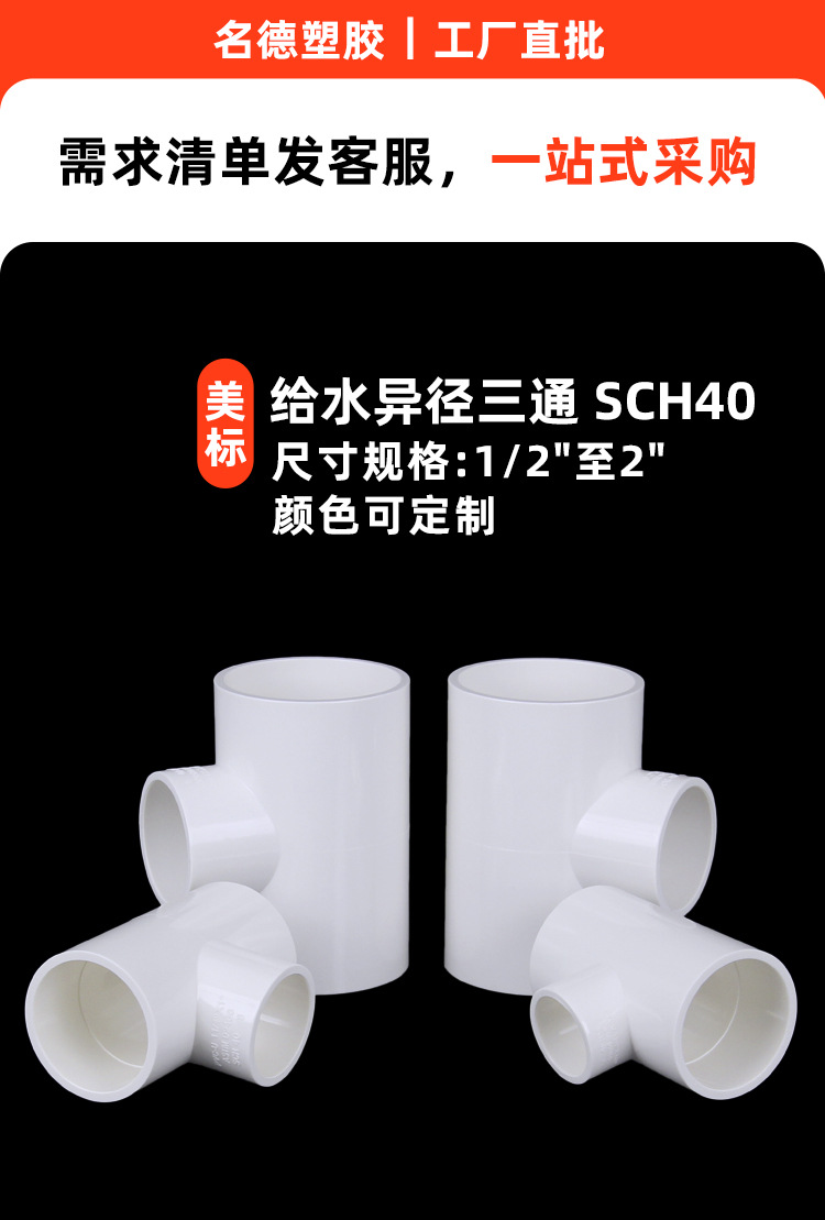 Трансграничные Amazon горячие продажи США стандарт UPVC питательной воды с диаметром тройник SCH40 переменная диаметр тройник питательной воды аксессуары