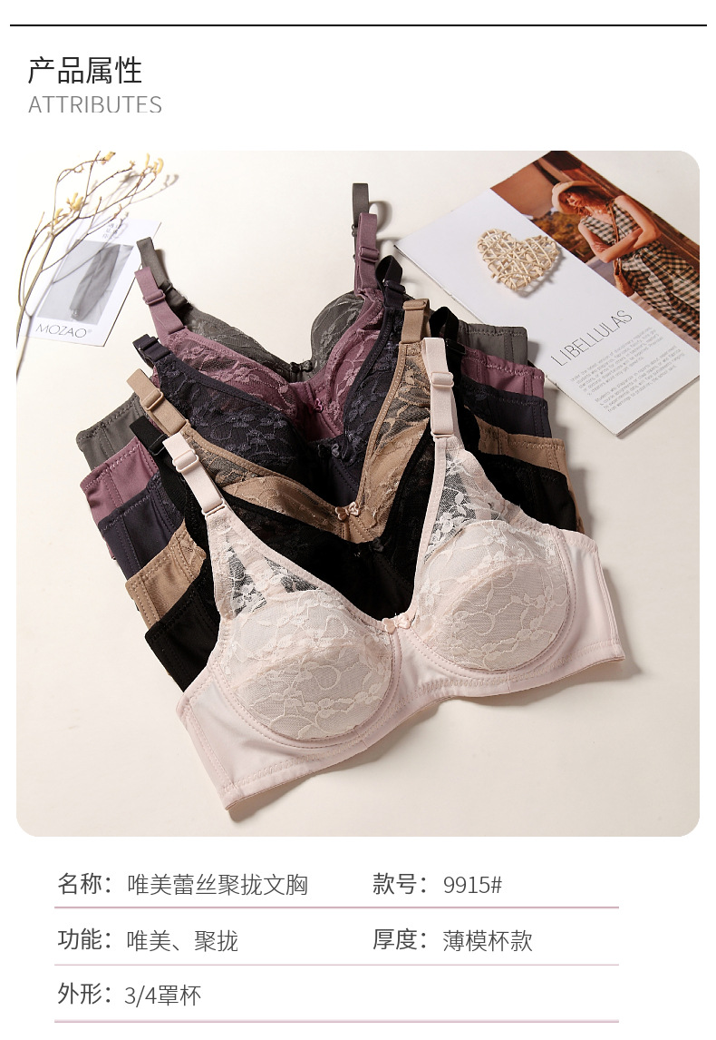 Трансграничное европейское и американское кружевное нижнее белье большого размера, чтобы собрать стальное кольцо, чтобы собрать вспомогательное молоко, регулирующее бюстгальтер 9915