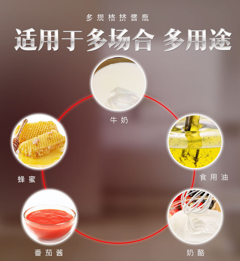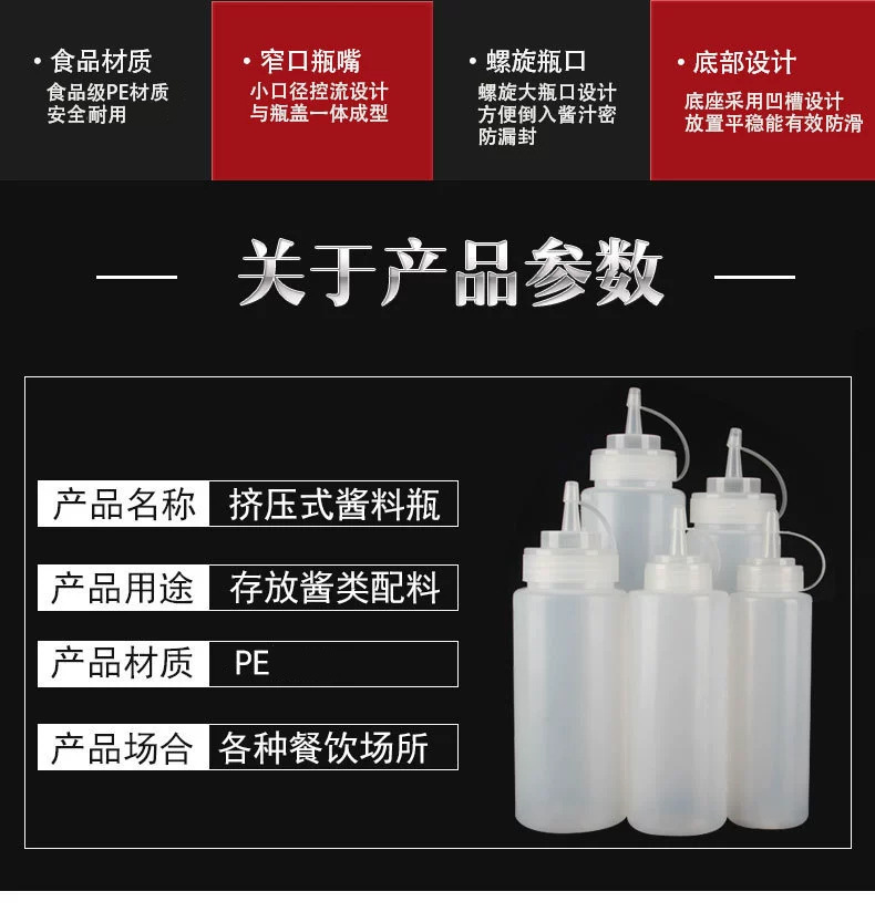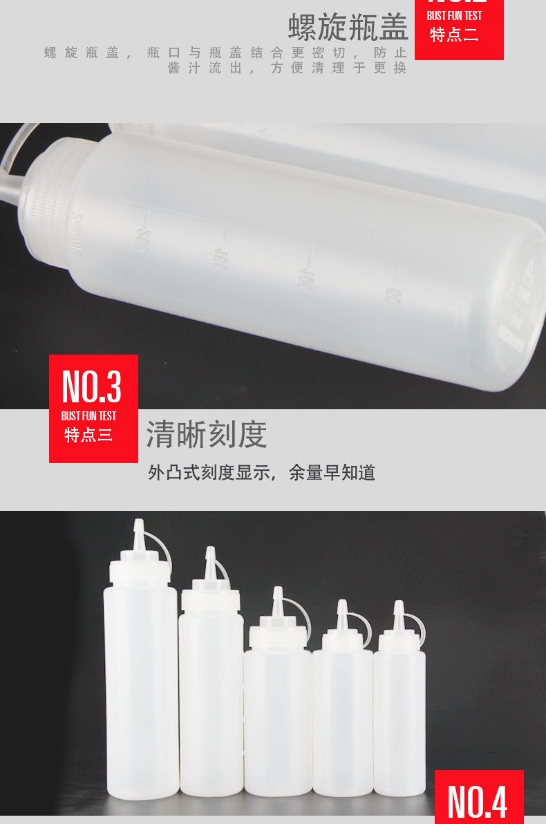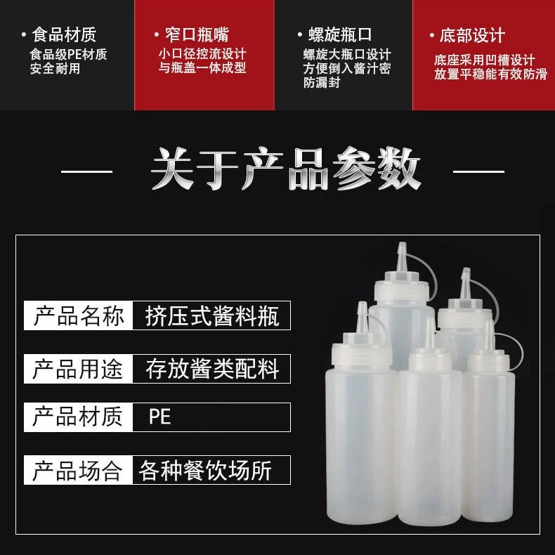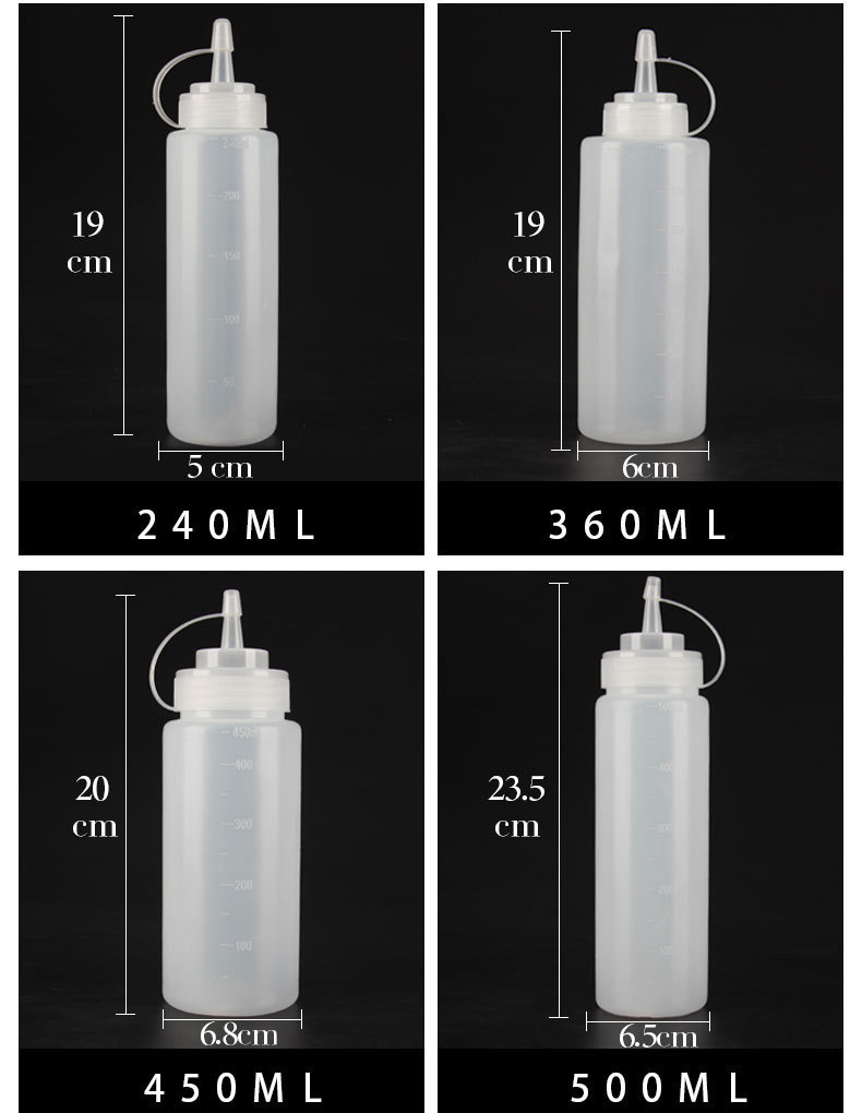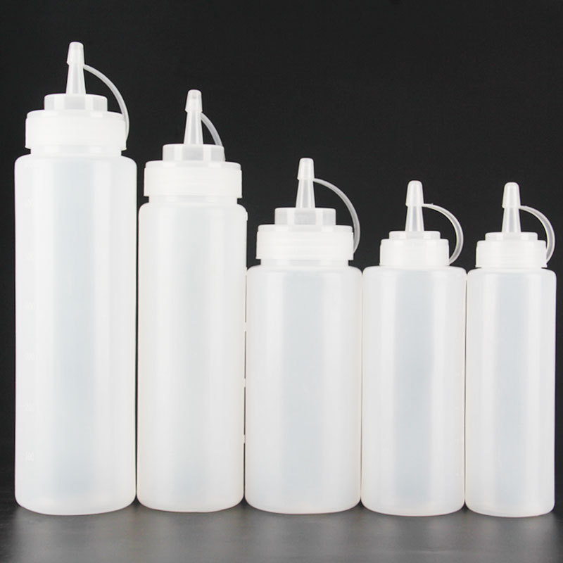 Оптовые бутылки для соуса с несколькими спецификациями, градуированные бутылки для салата с крышками, пластиковые бутылки с наконечником для томатного соуса, бутылки для выдавливания.
