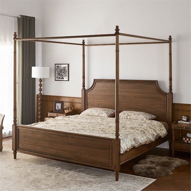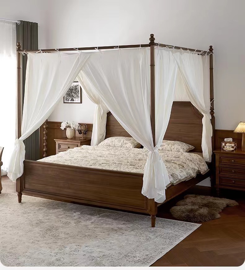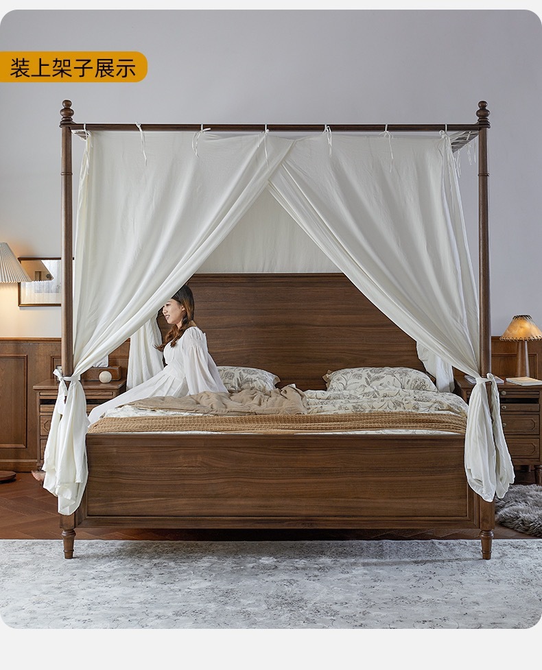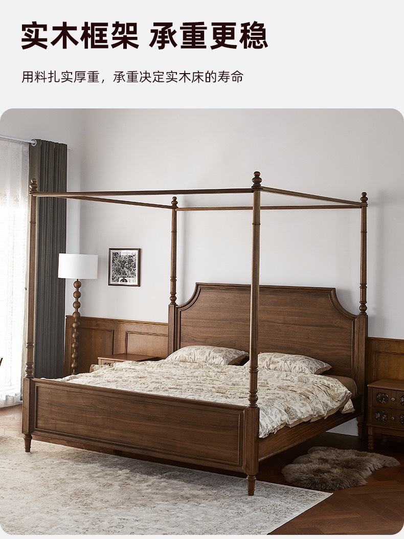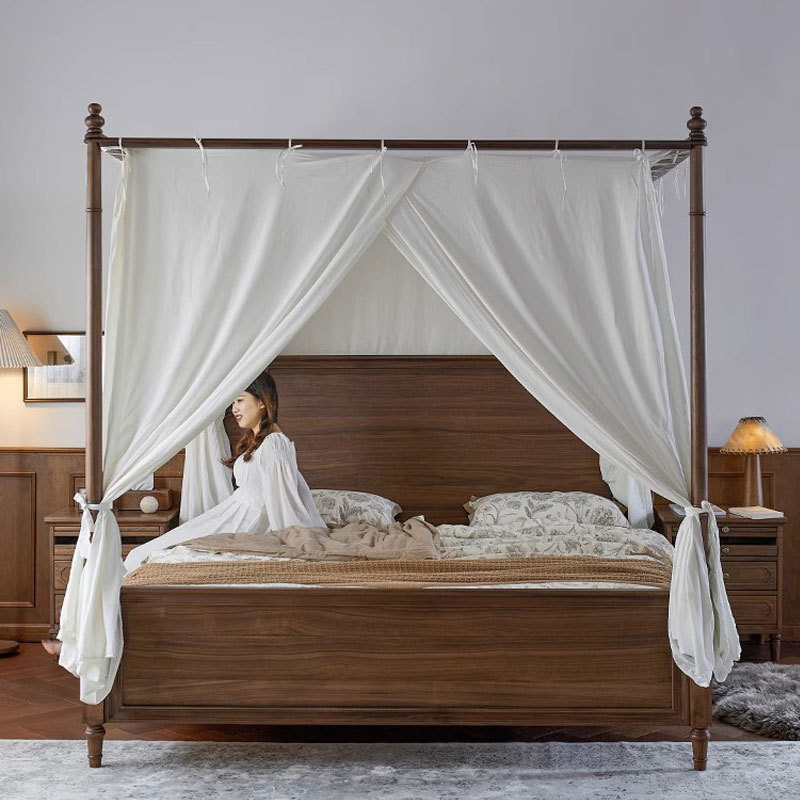 Американский ретро все массивные деревянные двуспальные кровати черный орех дерево кровать с балдахином домашняя спальня кровать мебель для свадебных кроватей бревна