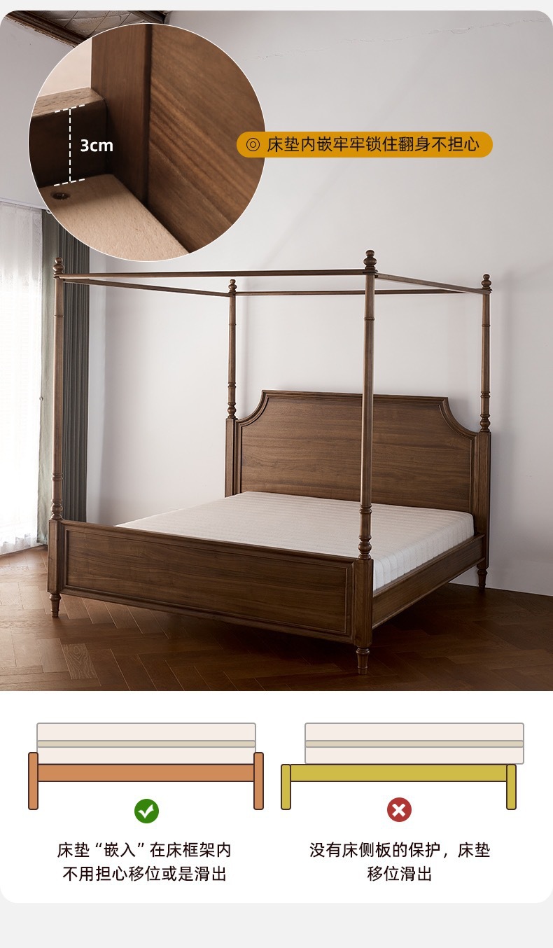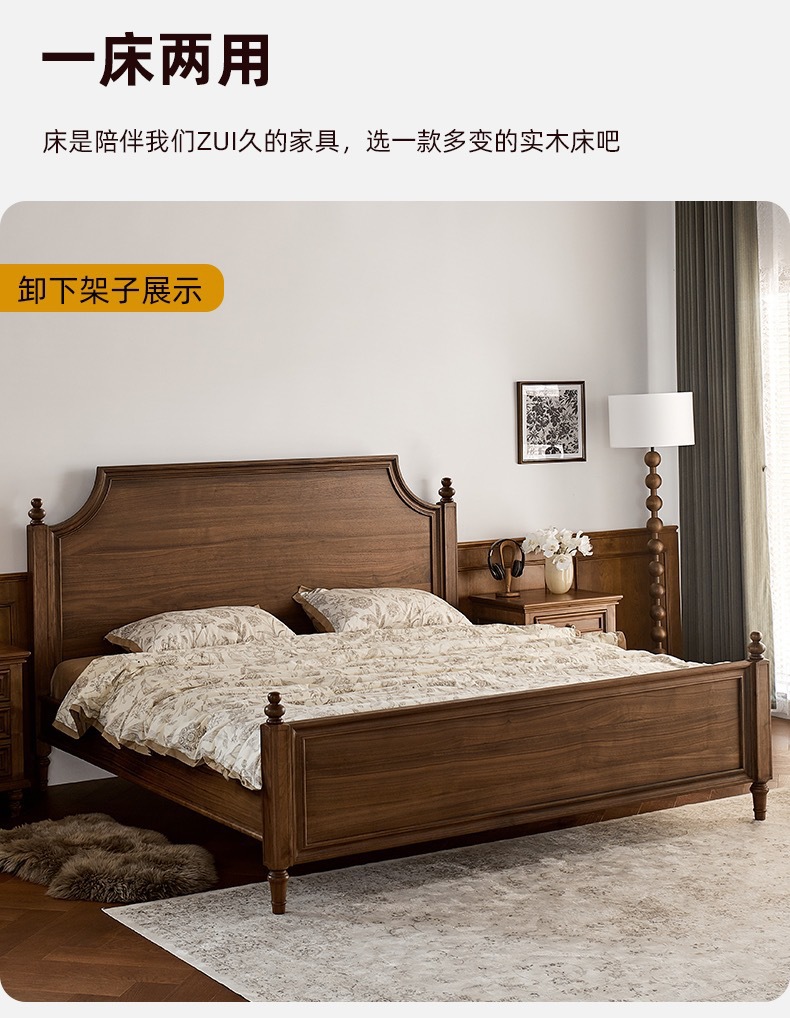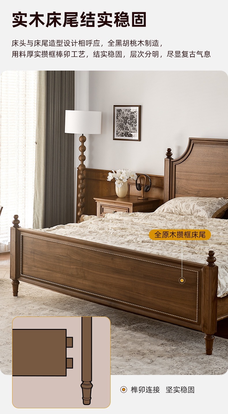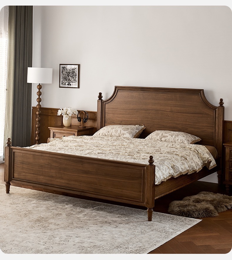 Американский ретро все массивные деревянные двуспальные кровати черный орех дерево кровать с балдахином домашняя спальня кровать мебель для свадебных кроватей бревна