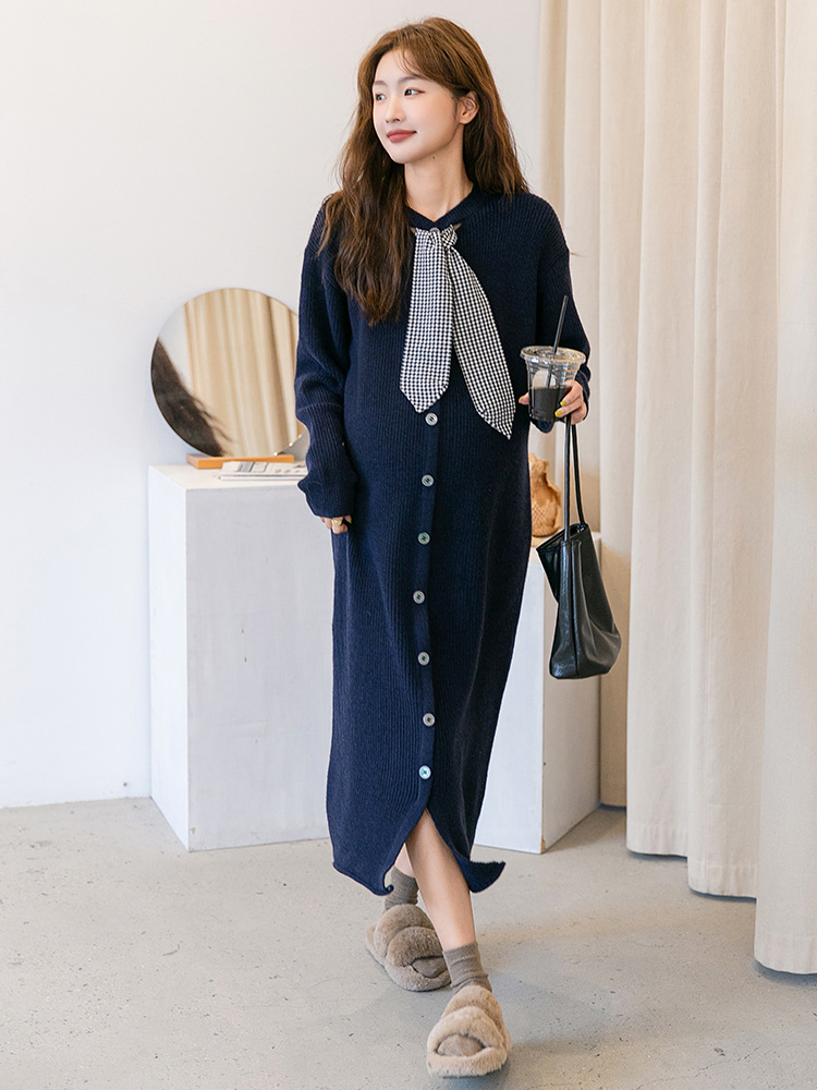 Осенняя и зимняя одежда для беременных мода галстуок-бабочка для беременных длинный кардиган свитер вязаный свитер эластичная большой размер