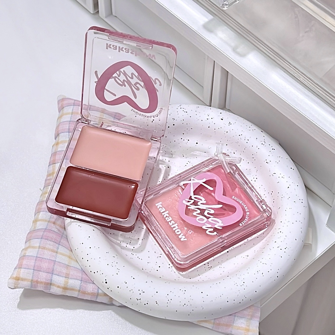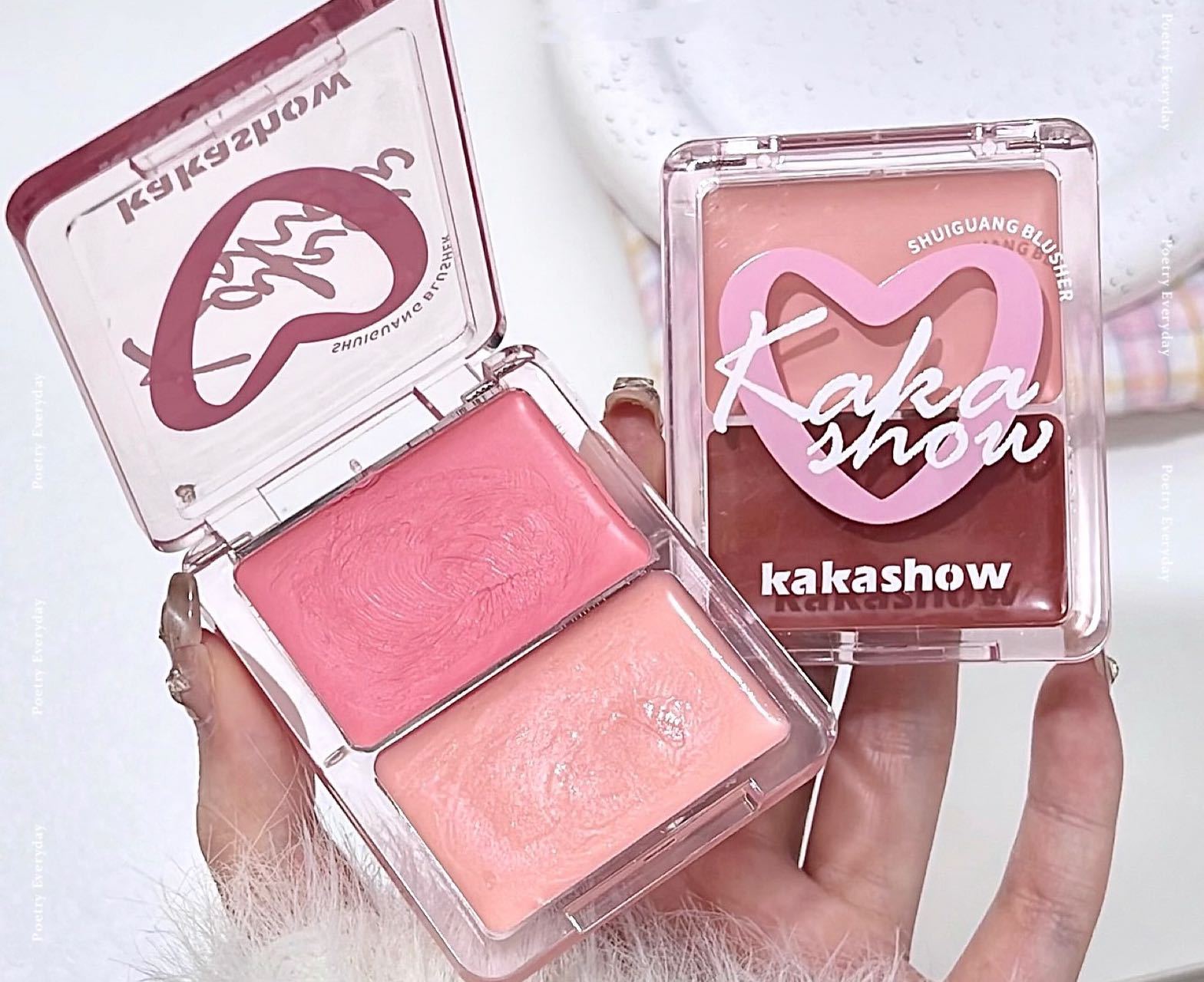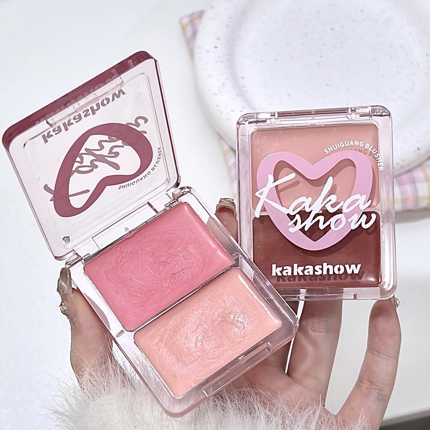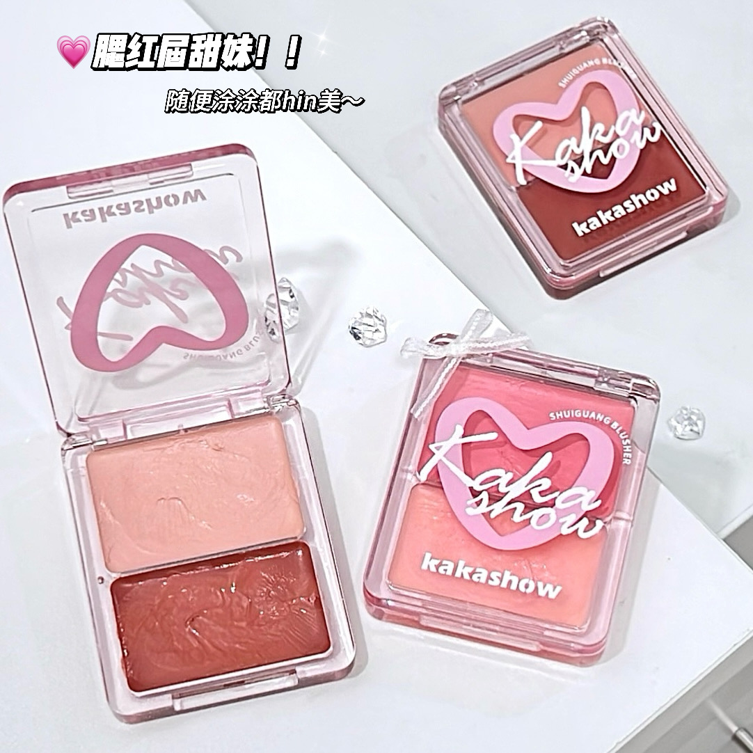 Двухцветные водно-блестящие румяна-крем kakashow