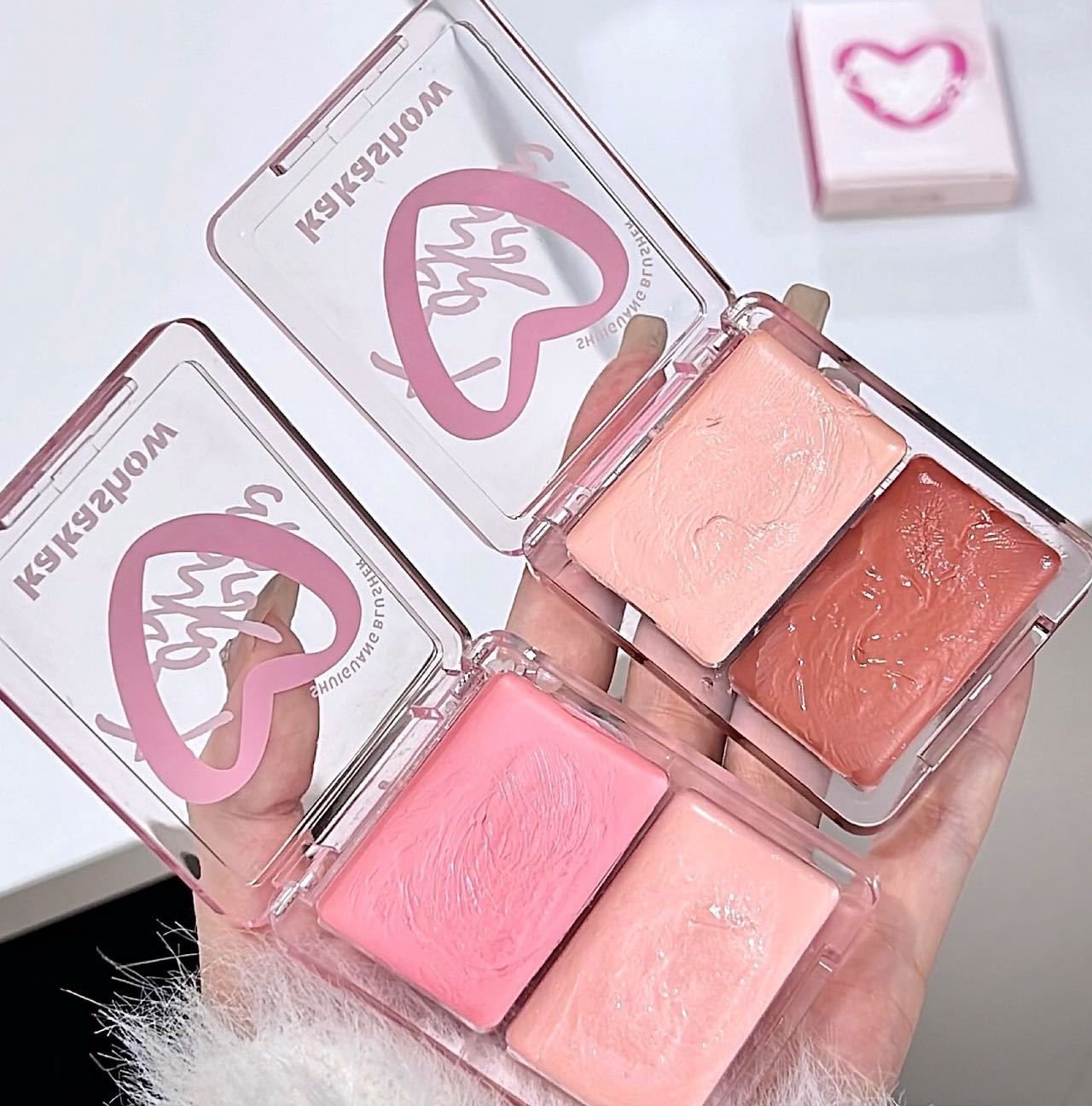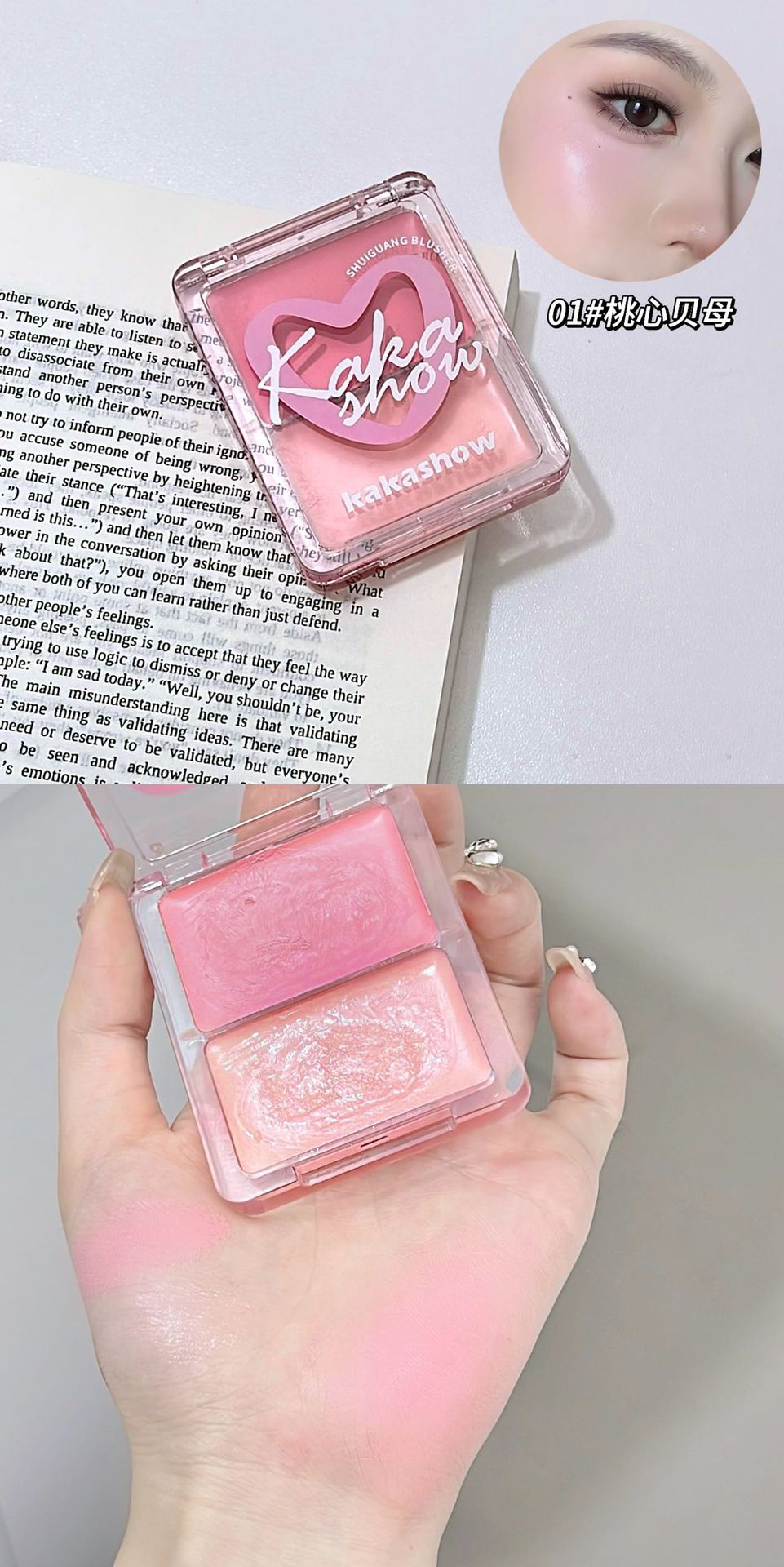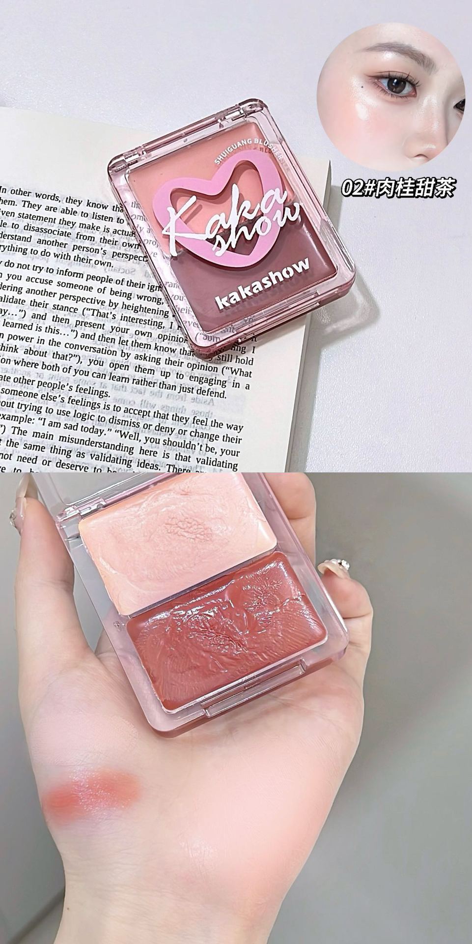Двухцветные водно-блестящие румяна-крем kakashow