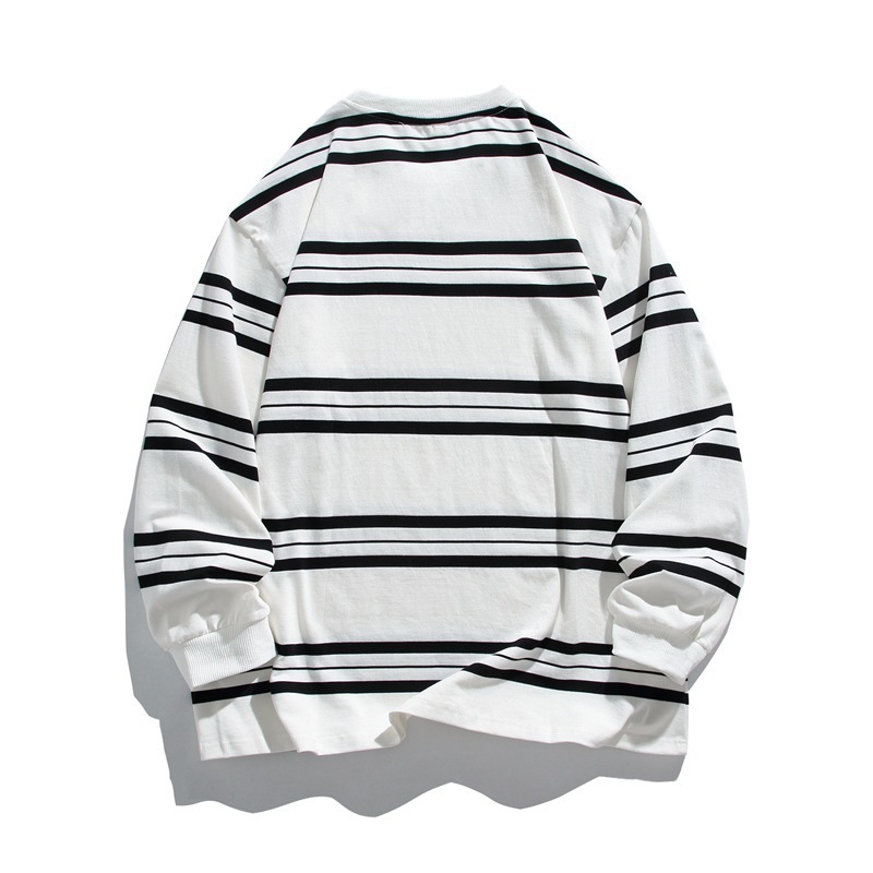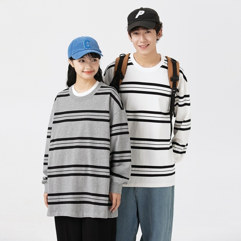 Новые весенне-осенние футболки и свитшоты с длинным рукавом, повседневная уличная одежда для пар, одинаковый стиль для мужчин и женщин, полосатые свитшоты с круглым вырезом.