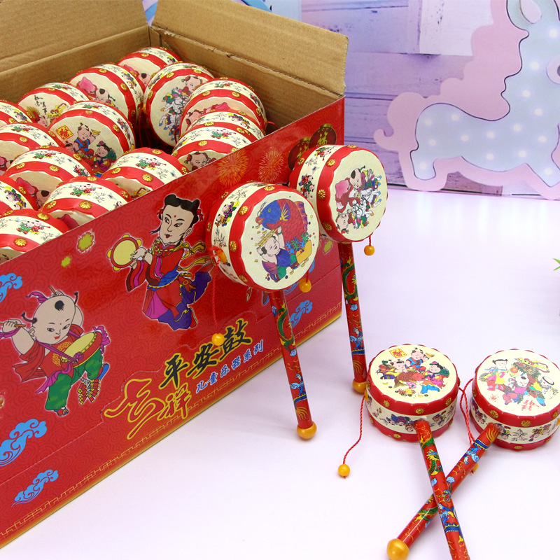 Интернет-красный ребенок благоприятный погремушка в штучной коробке маленький барабан для малышей ручной барабан традиционный киоск игрушка оптом 830