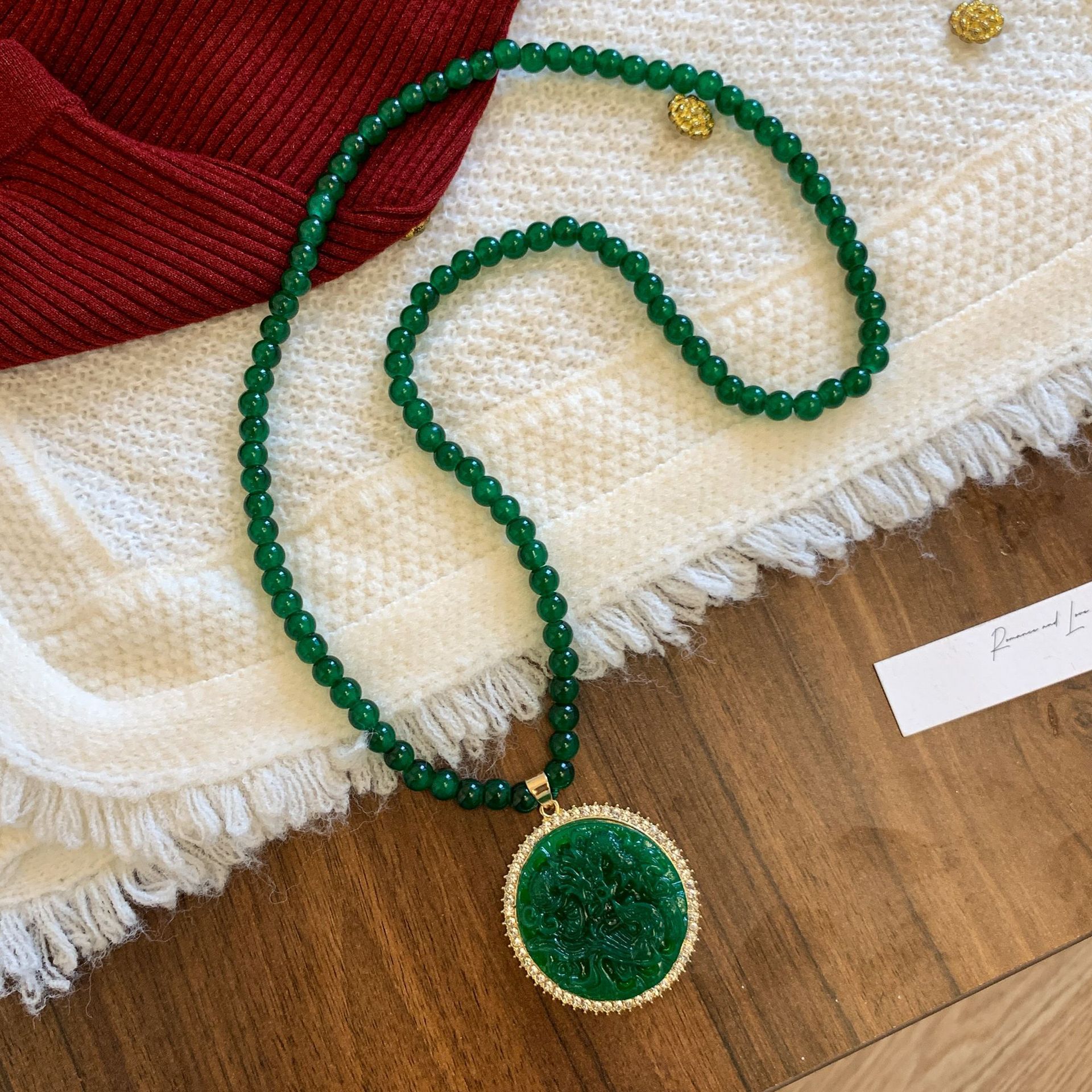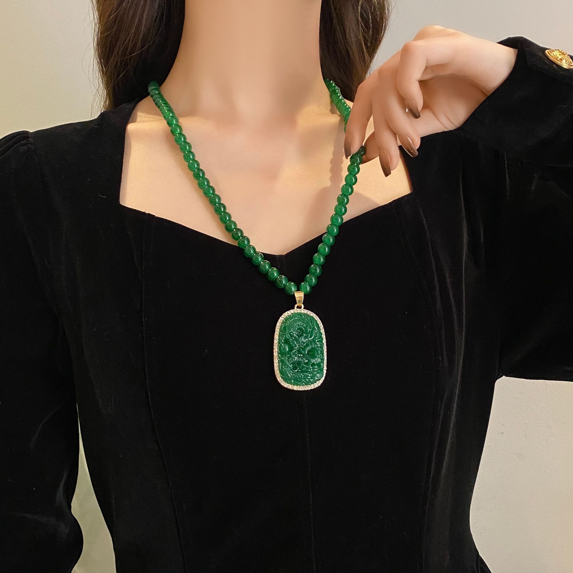Новое в китайском стиле изумрудное старое ожерелье женское длинное простое дикое осеннее и зимнее модное свитер цепочка подвеска аксессуар женский