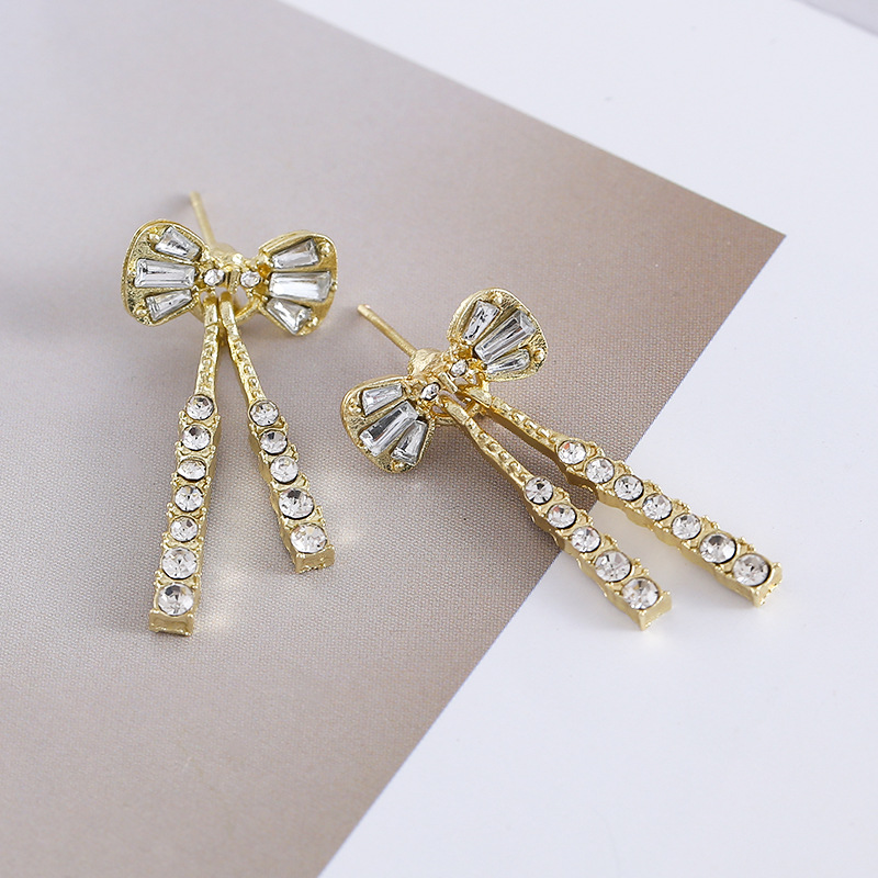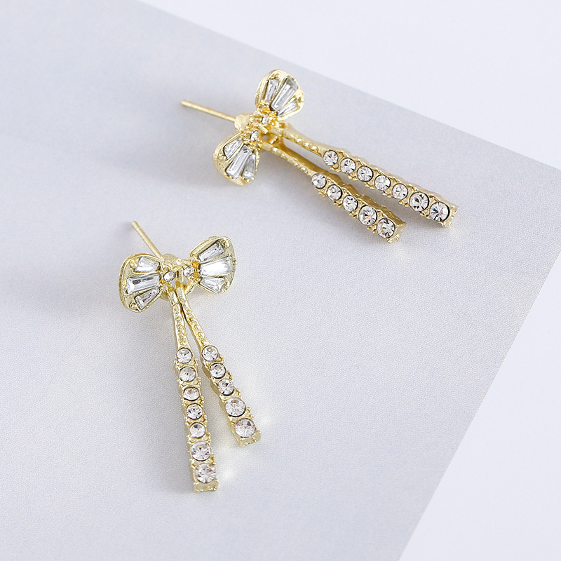 Микро инкрустированные банты хрустальные серьги модный темперамент серьги темперамент корейский новый модный дизайн серьги серьги