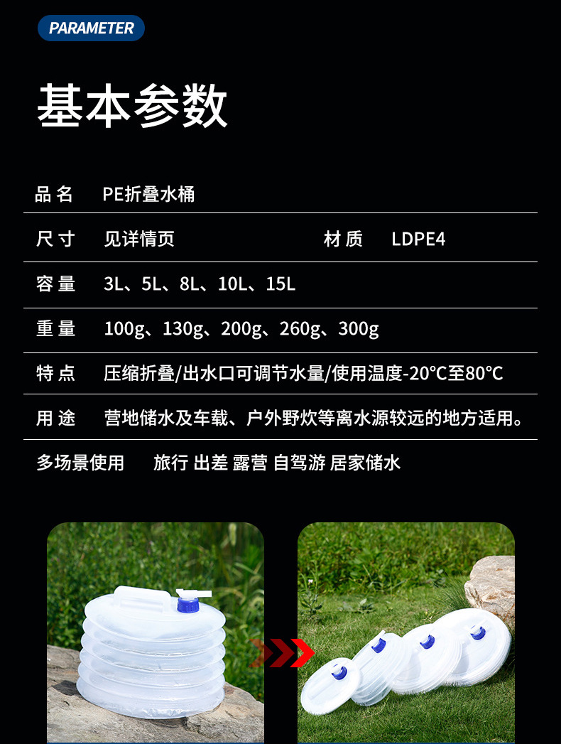 Складное ведро на 3 л.; Складное ведро 5 л.; Складное ведро на 8 л.; Складное ведро на 10 л.; Складное ведро на 15 л.