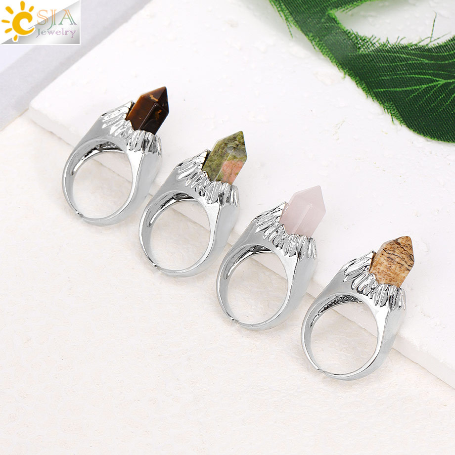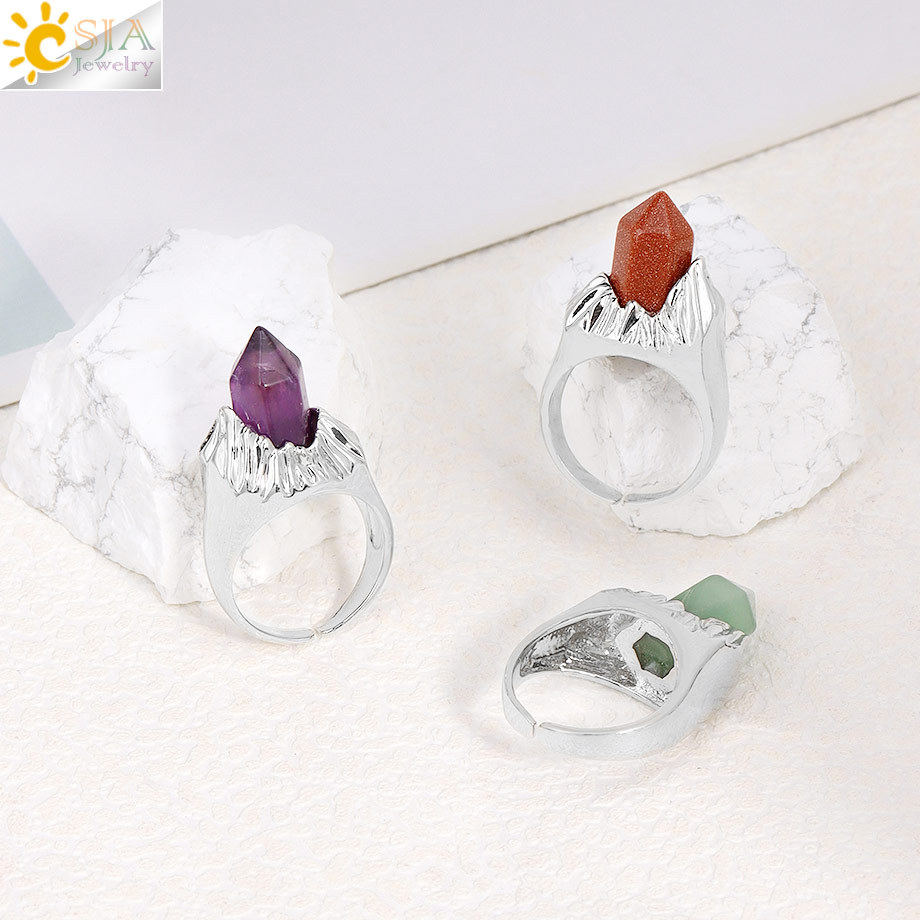 Персонализированная мода Европа и США трансграничные ювелирные изделия оптом натуральный хрустальный камень шестиугольное кольцо
