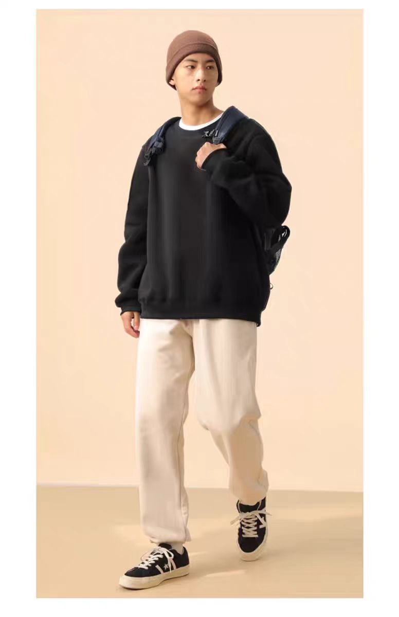 Зимний бархатный толстый свитер мужской коки с круглым вырезом топ свободный пара без шляпы пуловер мужской куртка ins1/2