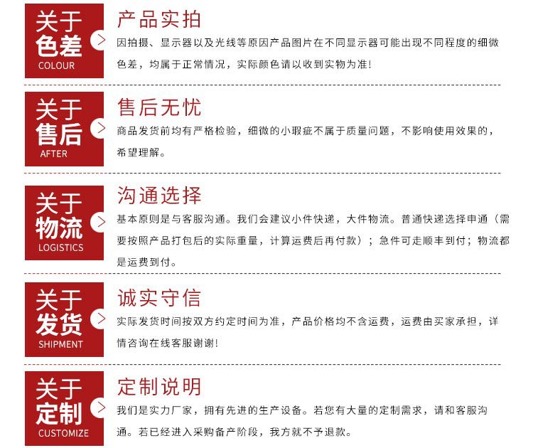 其次,我司在此做出重要申明:下单付款前请务必联系客服,沟通好运费问题,不询问者,请恕我方仓库不能发货。再次感谢您对我们的支持和理解!