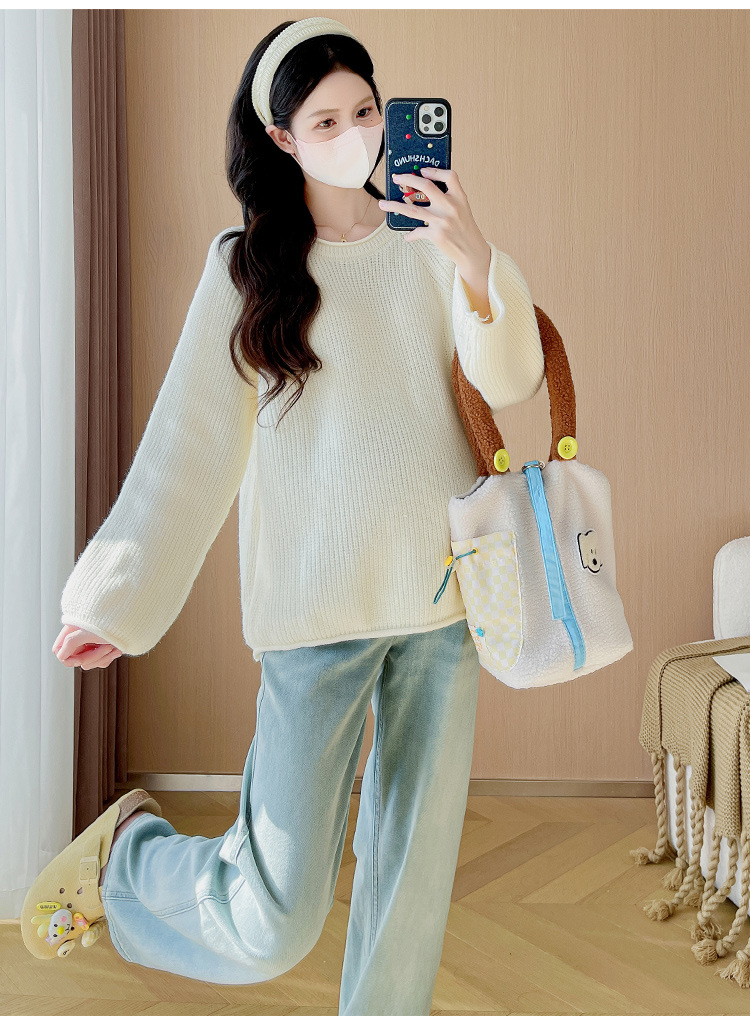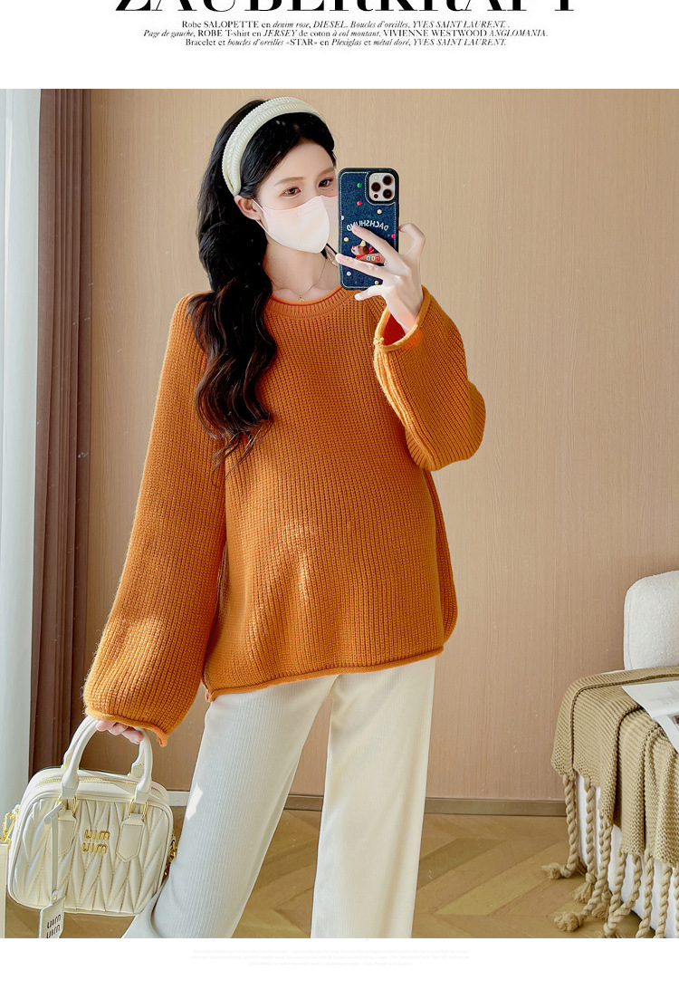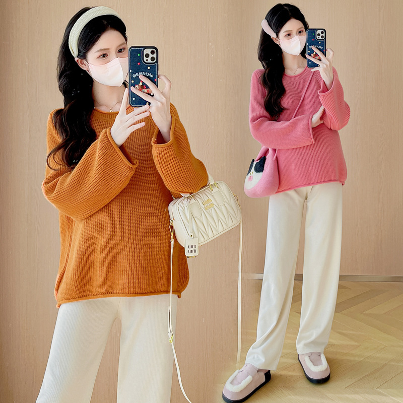 Одежда для беременных осенью и зимой простой вязаный свитер с длинными рукавами свитер пуловер 2024 новый топ для беременных зимний свитер