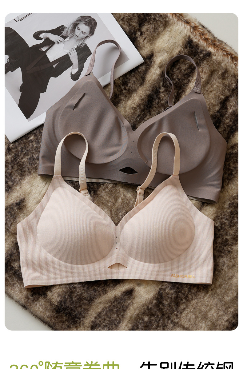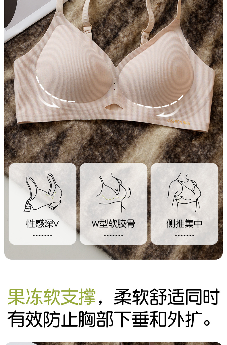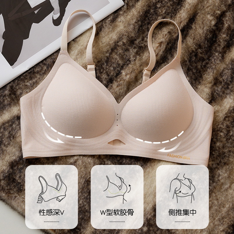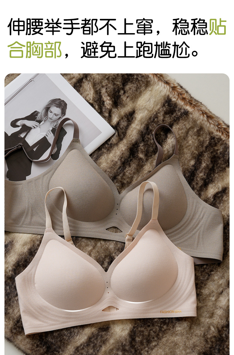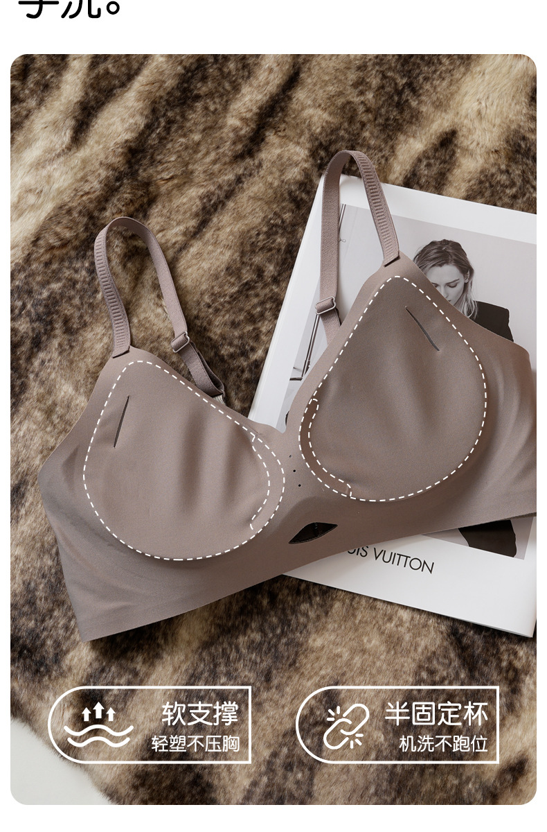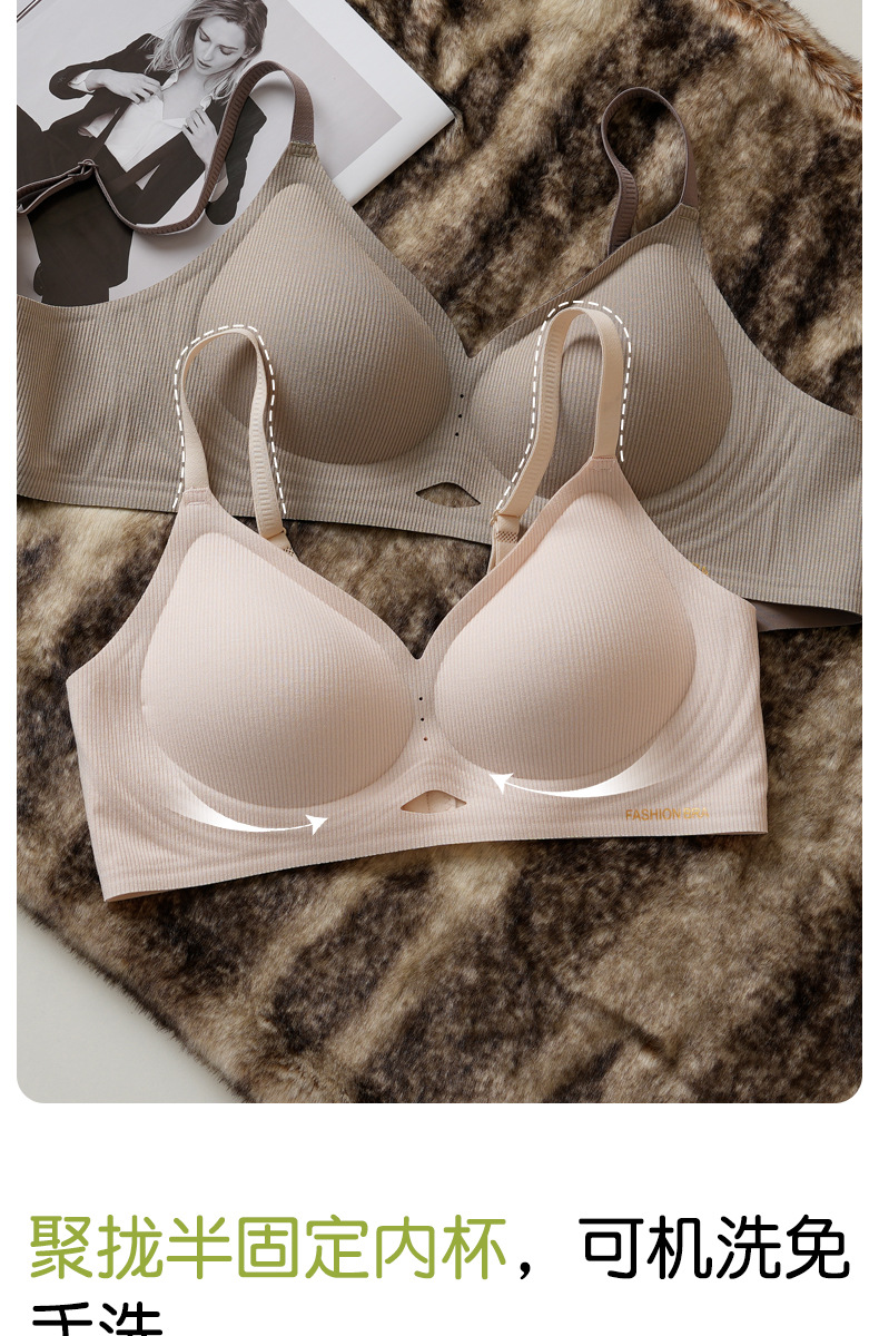 舒适聚拢运动乳胶杯内衣女防下垂无钢圈文胸少女小胸无痕半固定镂空小心机新款女士内衣文胸7A抗菌舒适无痕内衣女小胸聚拢型文胸