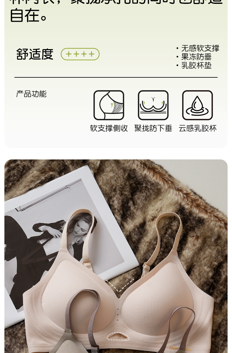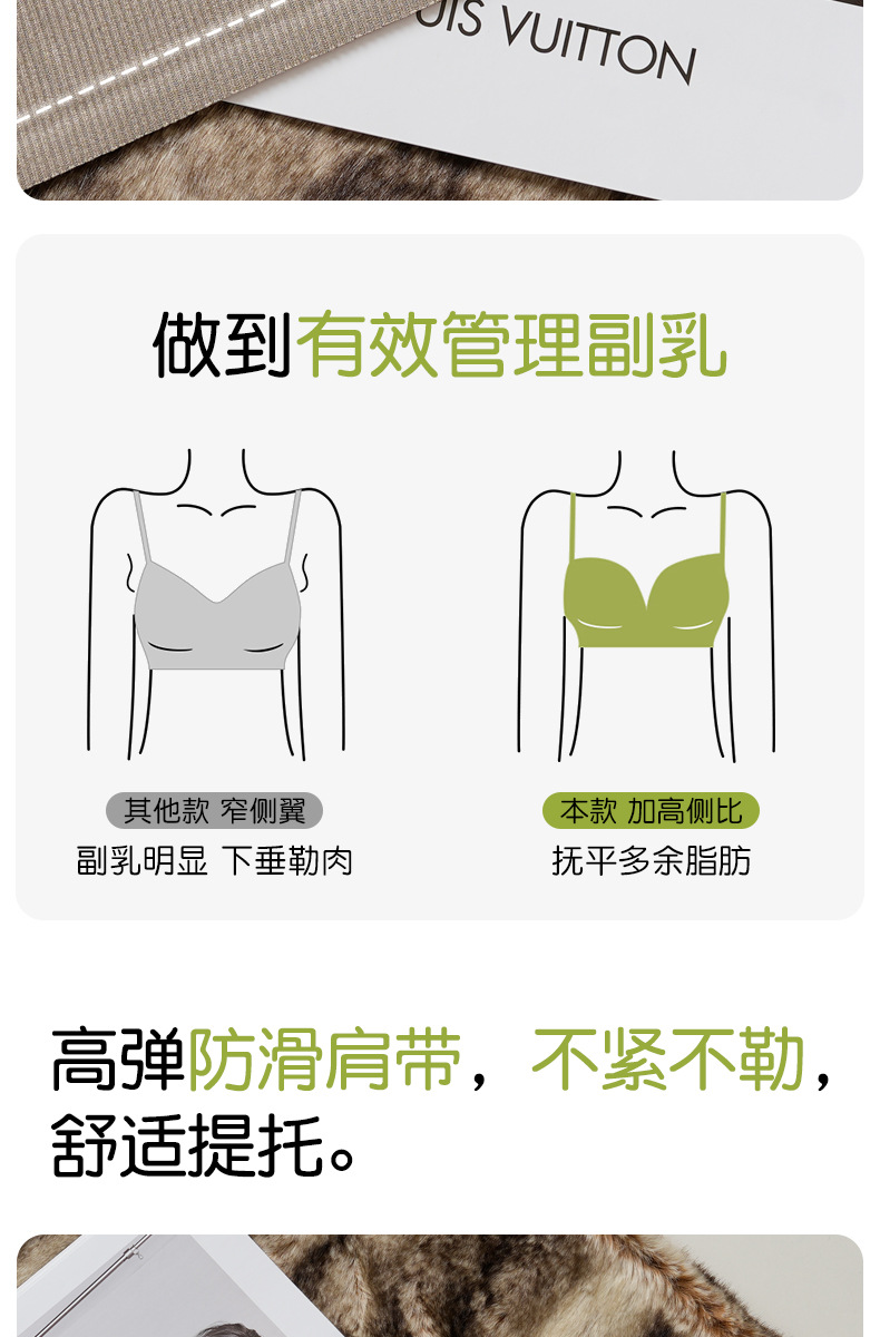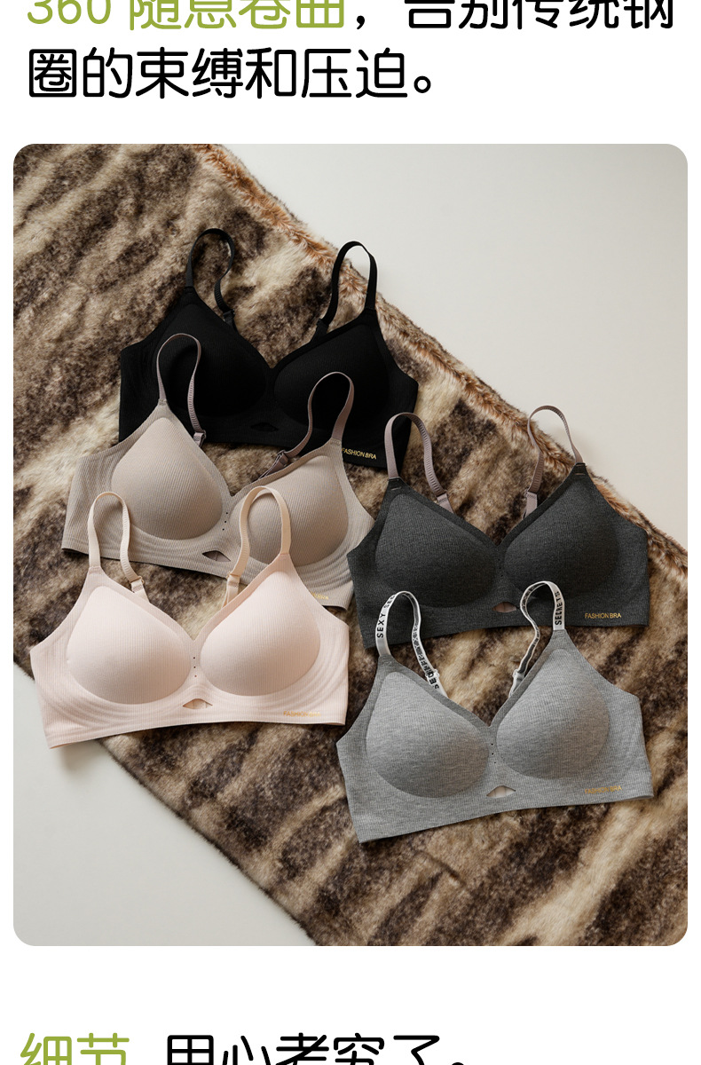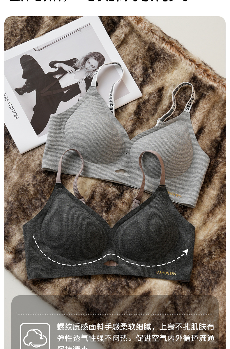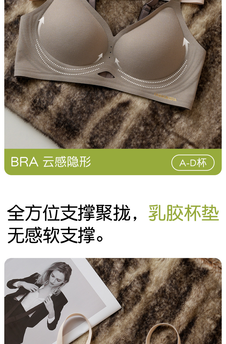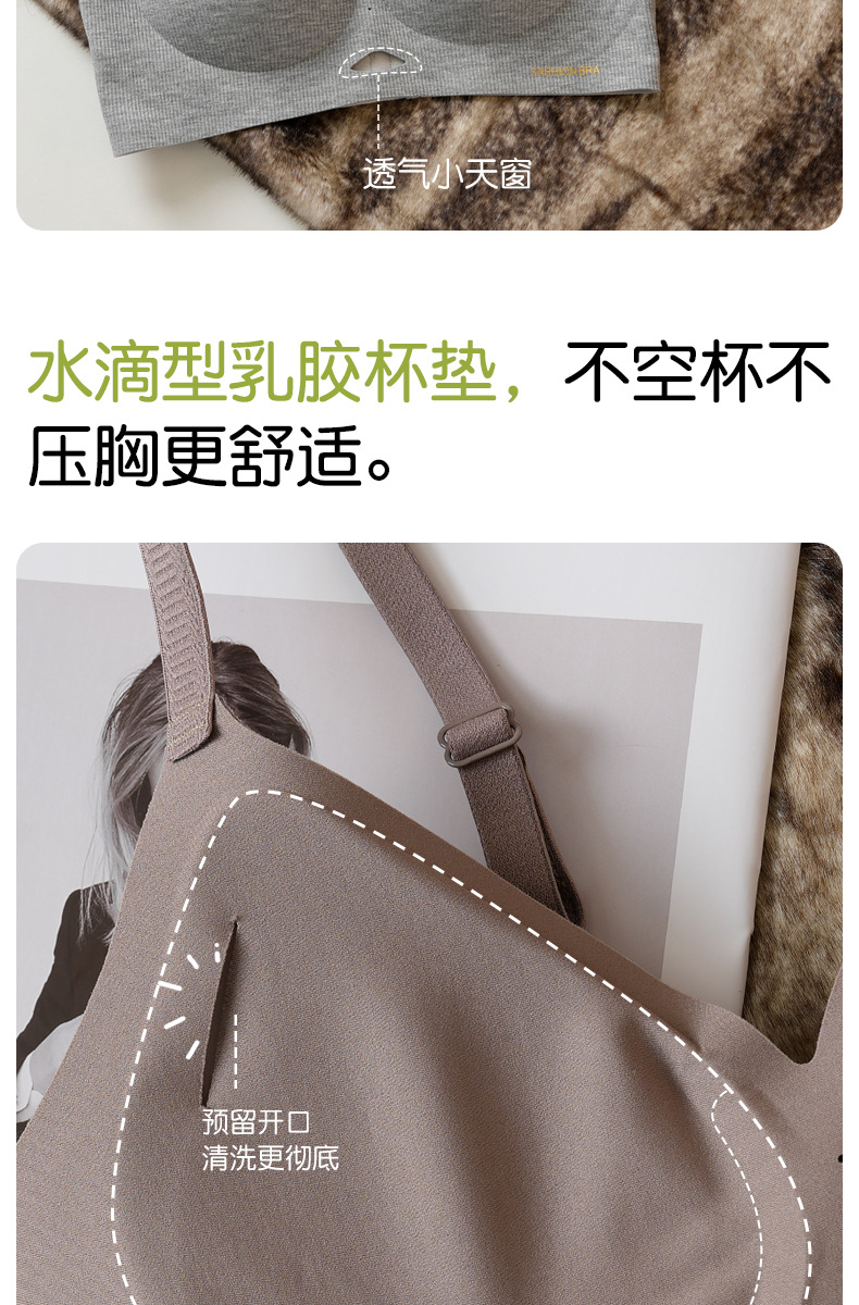 舒适聚拢运动乳胶杯内衣女防下垂无钢圈文胸少女小胸无痕半固定镂空小心机新款女士内衣文胸7A抗菌舒适无痕内衣女小胸聚拢型文胸