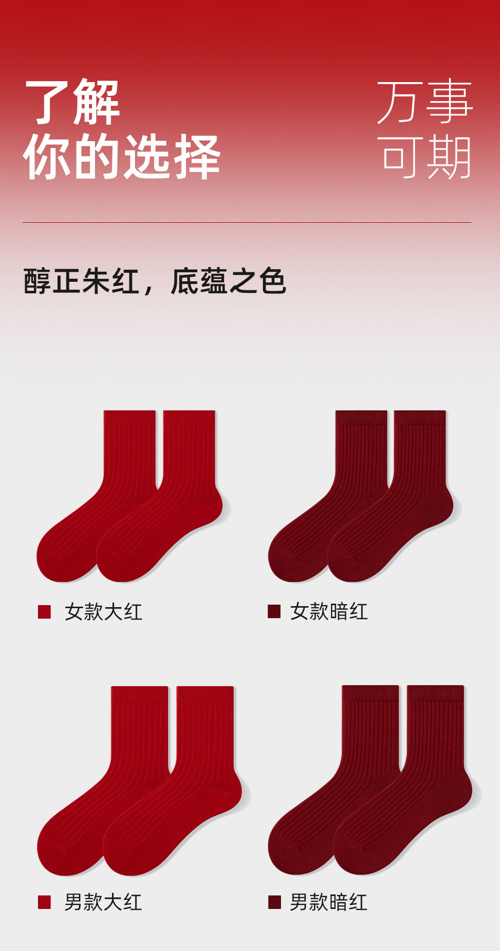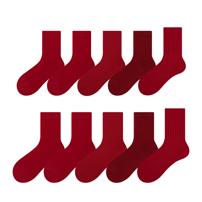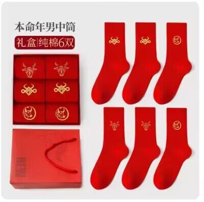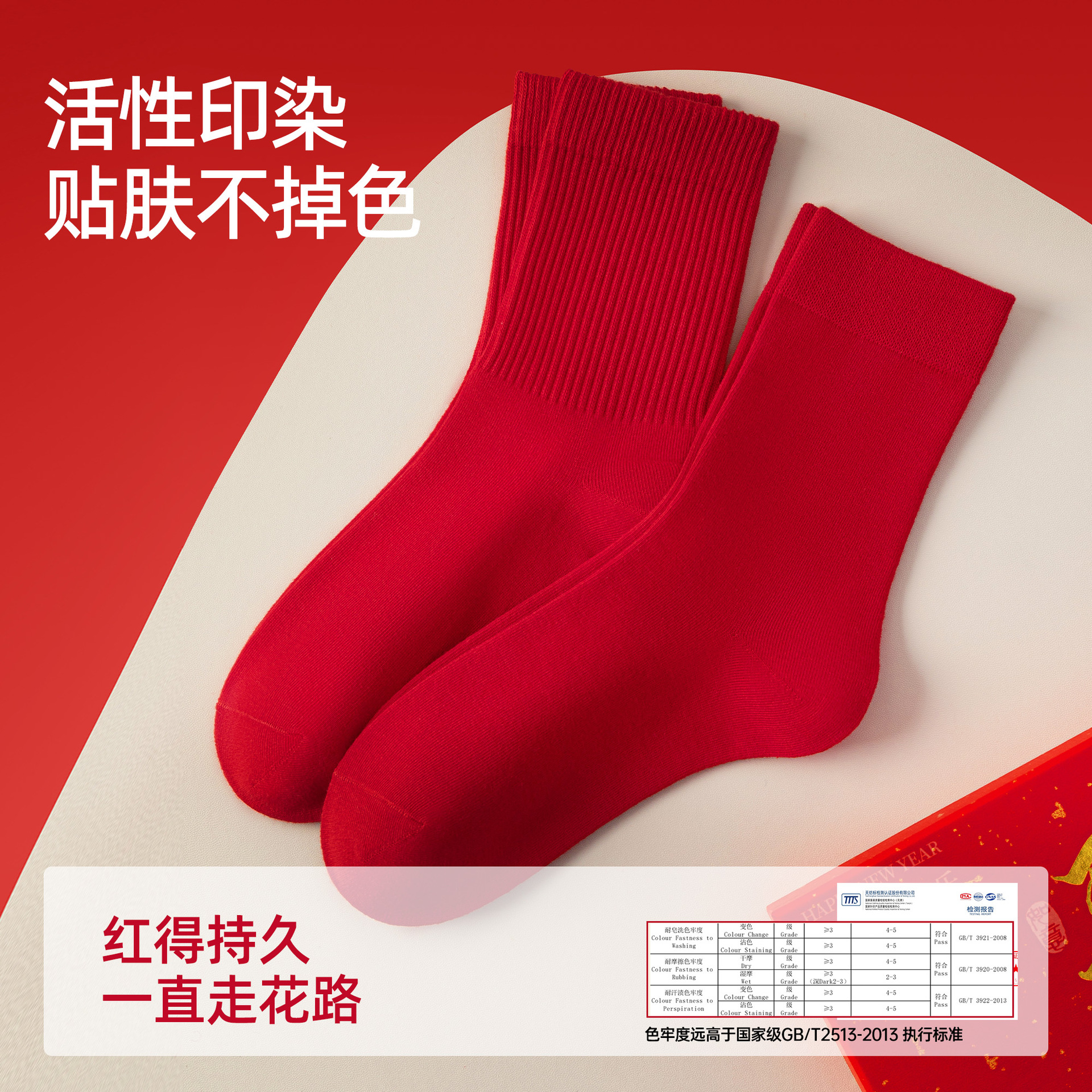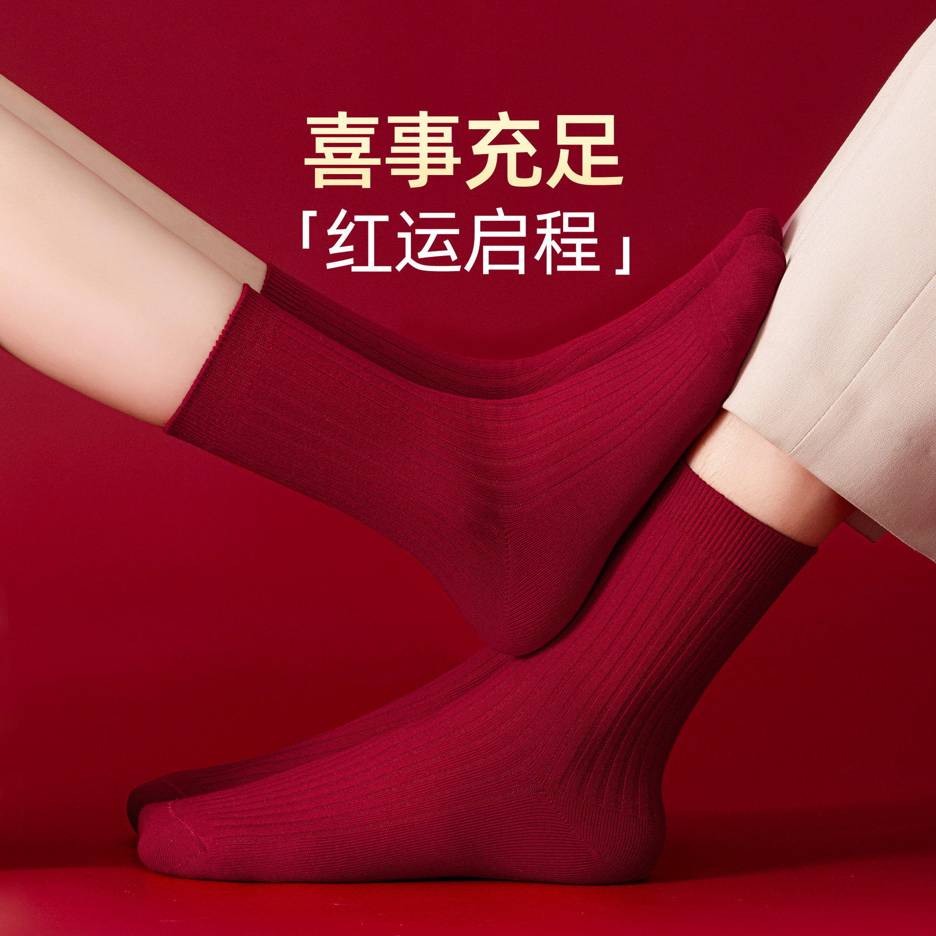 Красные носки на год рождения, унисекс, осенне-зимние хлопковые носки средней длины, стиль для молодоженов, Год Лошади, красные носки на Новый год.