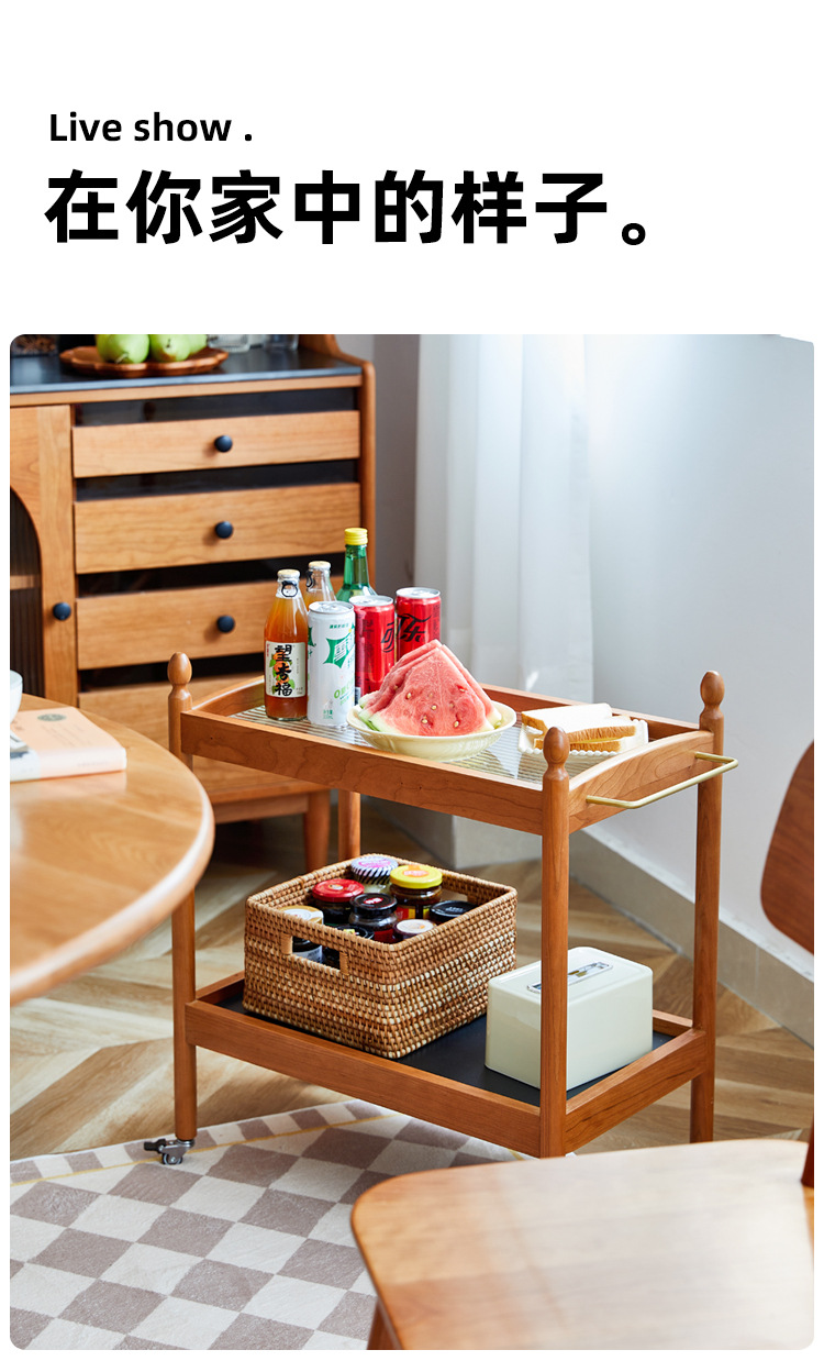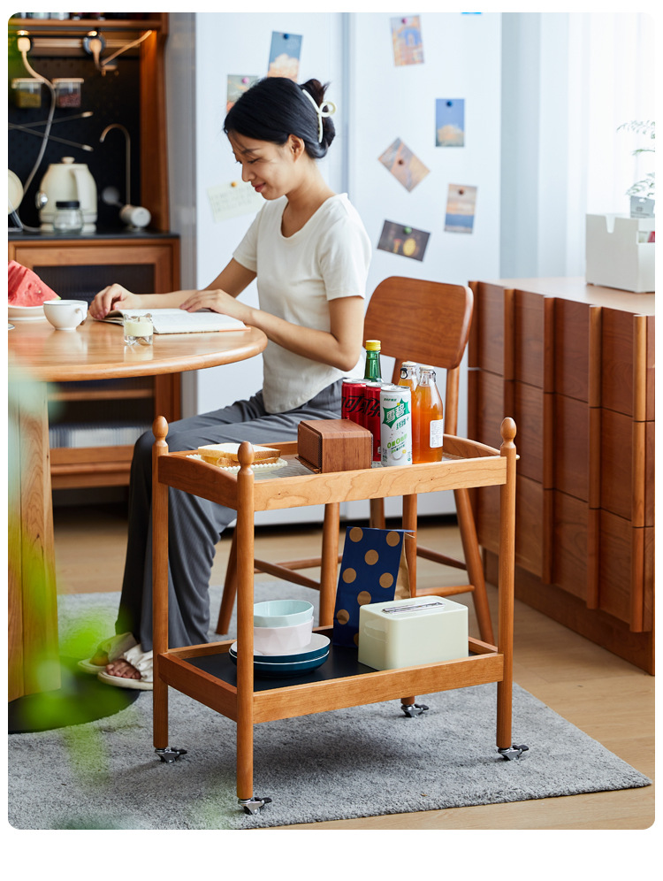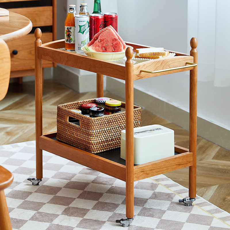 Съемная деревянная сторона вишневого дерева маленькая тележка скандинавский крем ветер гостиная столовая балкон угол