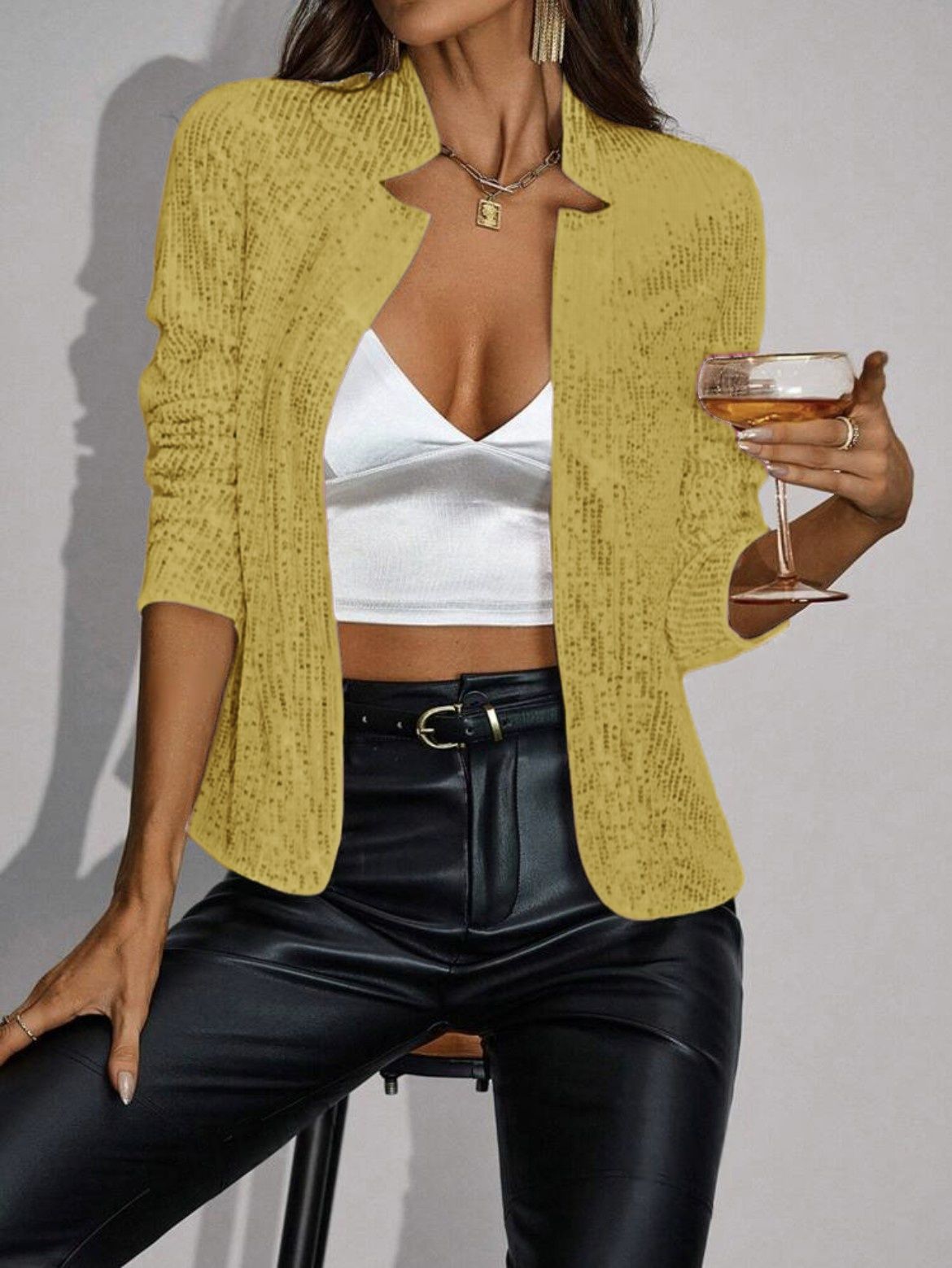 Европейская и американская Amazon трансграничная женская одежда новый модный воротник сплошной цвет короткий маленький пиджак повседневный дикий пиджак с блестками