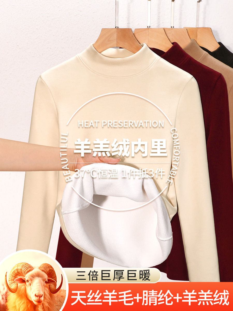 Женский термокомбинезон из смесовой шерсти с флисовой подкладкой и утолщенным воротником-стойкой, осенне-зимняя нижняя одежда, термобелье из овечьего флиса, цельный теплый флисовый топ.