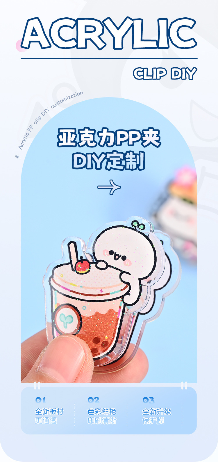 Симпатичный капельный клей утолщенный желе чувство акрилового ppp-зажима пользовательского Q-версии бренда периферийного мультяшного изображения клипа на заказ