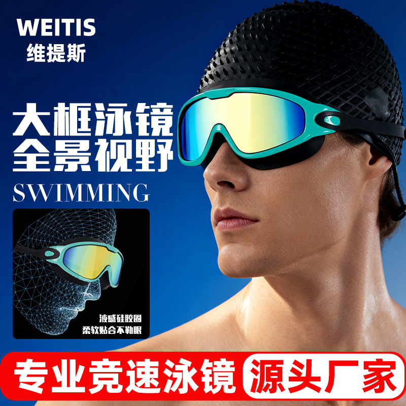 Трансграничные очки для плавания, противотуманные, высококачественные, не стягивающие глаза, подходящие для близорукости, взрослые очки для плавания для мужчин, оптовая продажа профессионального гоночного оборудования с гальваническим покрытием.