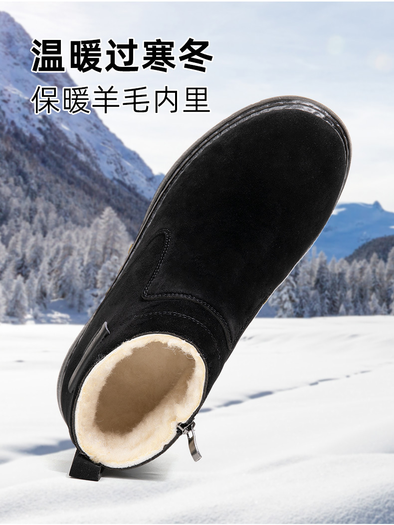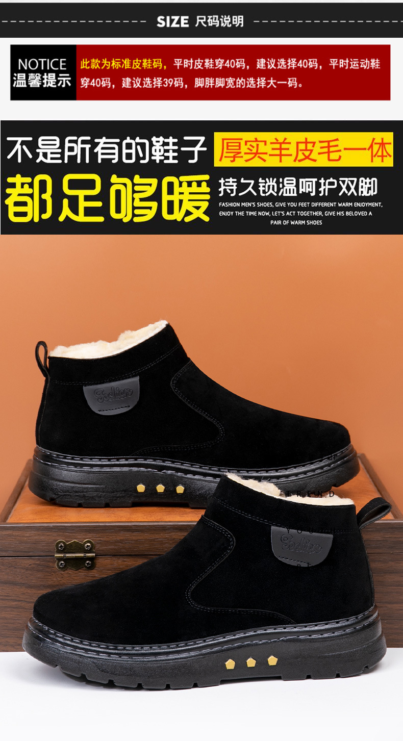 Зимние новые старые пекинские туфли, мужские ботинки, теплая нескользящая обувь из овечьей шерсти для пап среднего и пожилого возраста, утепленная хлопковая обувь на флисовой подкладке
