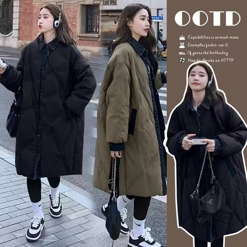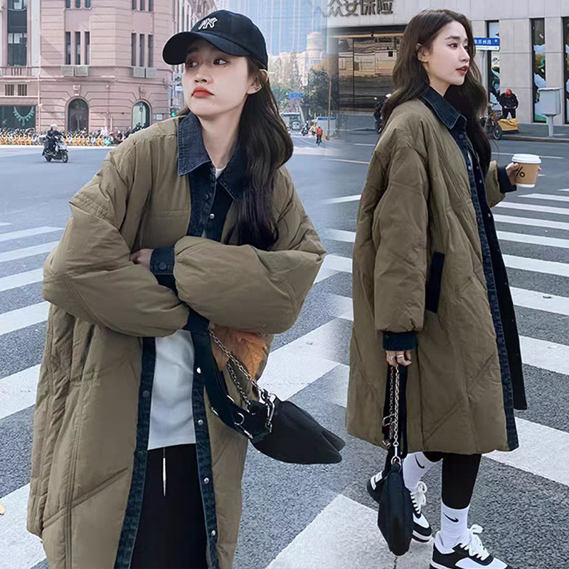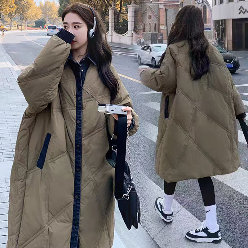 Lingge Женская зимняя одежда для беременных 2024 новый корейский продвинутый джинсовый сшитый средний длинный белый утиный пуховый хлопок
