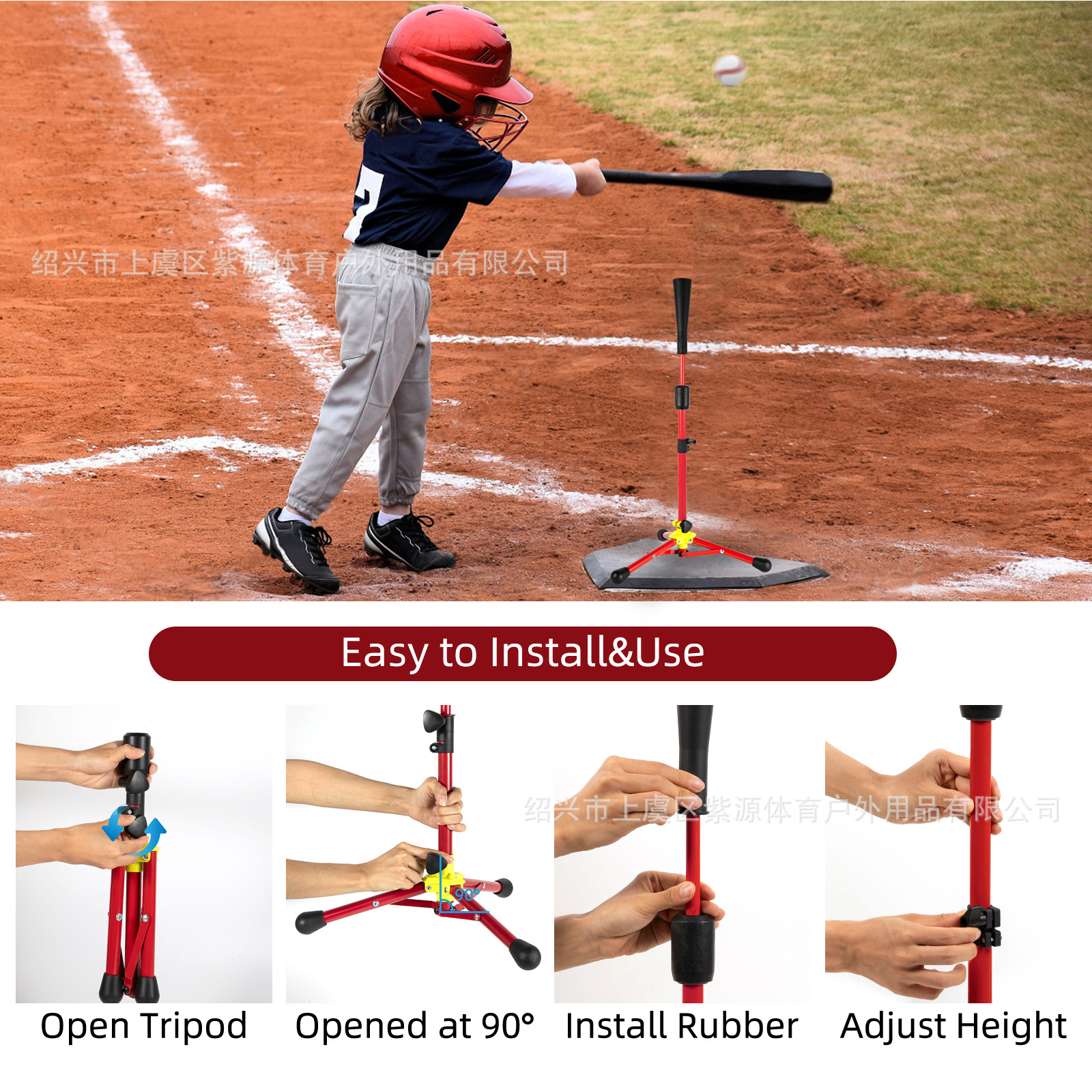 棒球打击座训练器棒球练习座棒垒球打击T架三角架可调高打击器