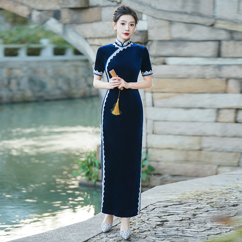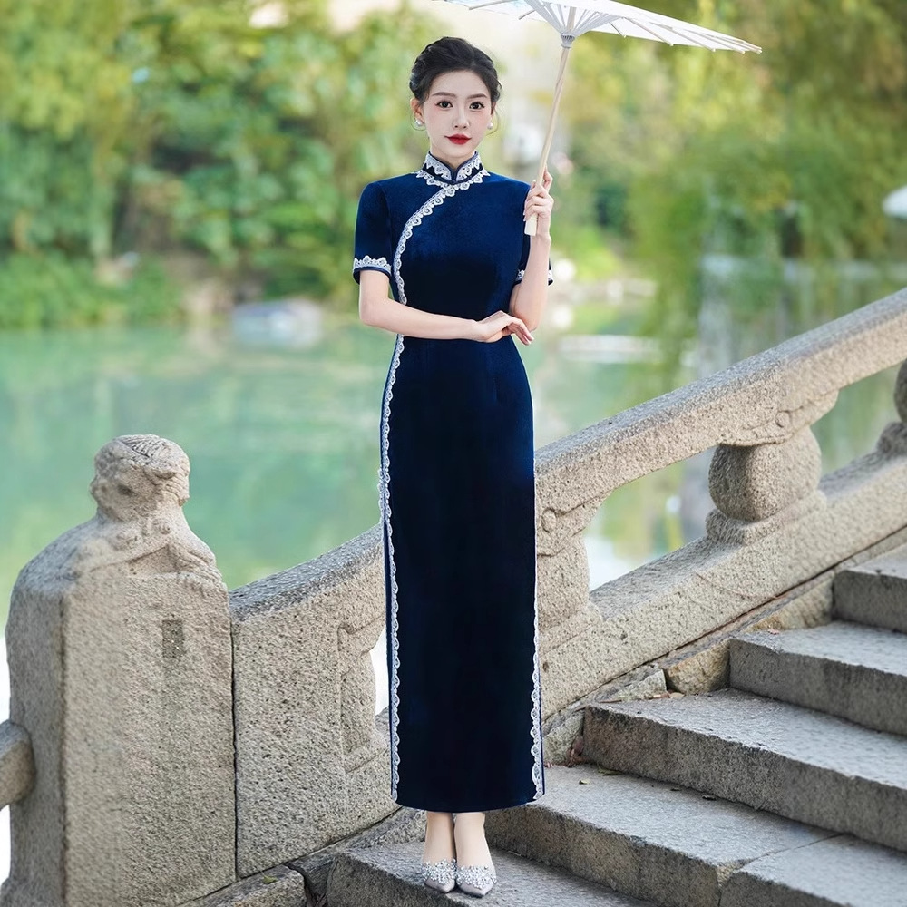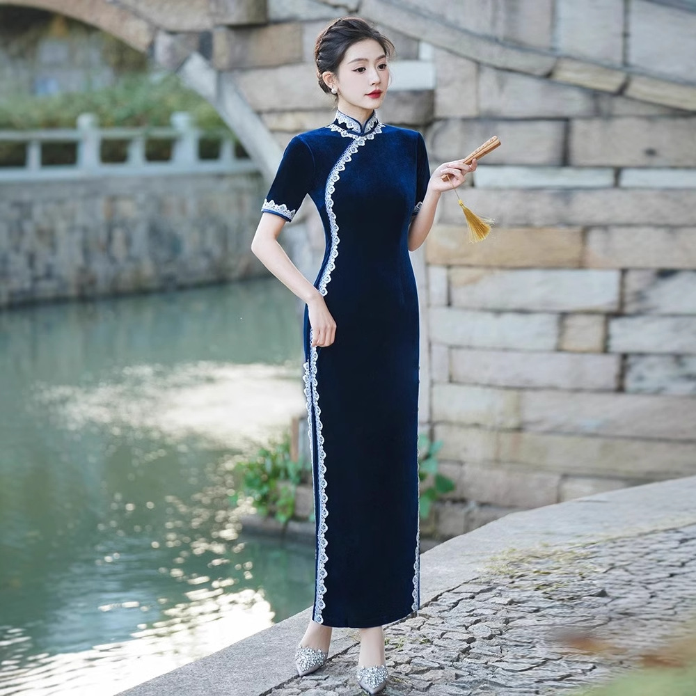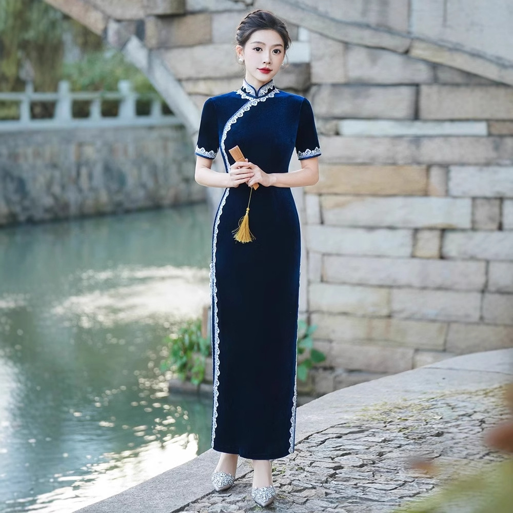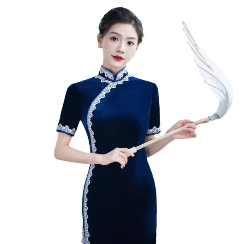 Модное и элегантное бархатное платье-ципао 2026 года, улучшенная модель для повседневной носки и выступлений на подиуме