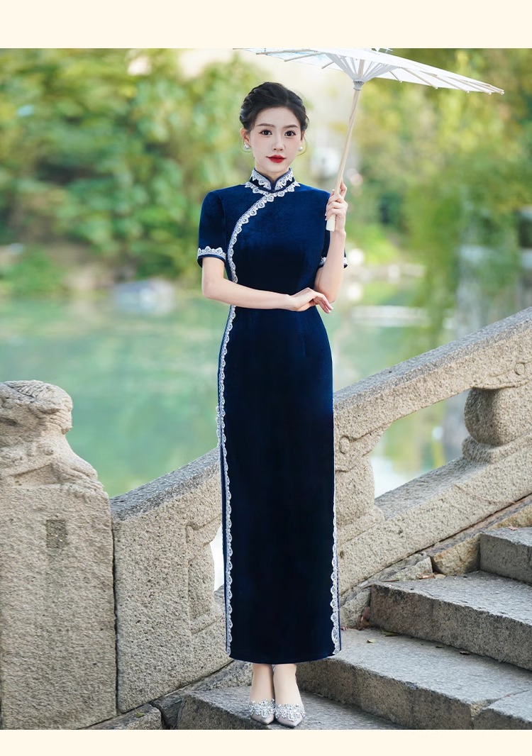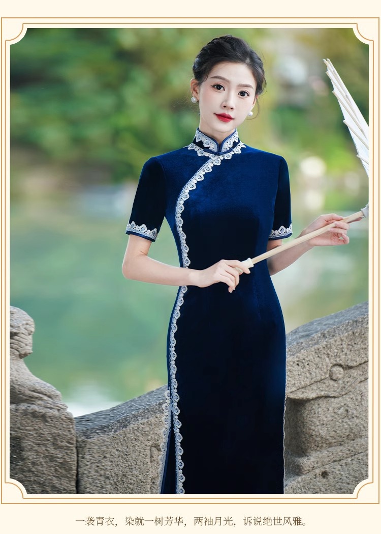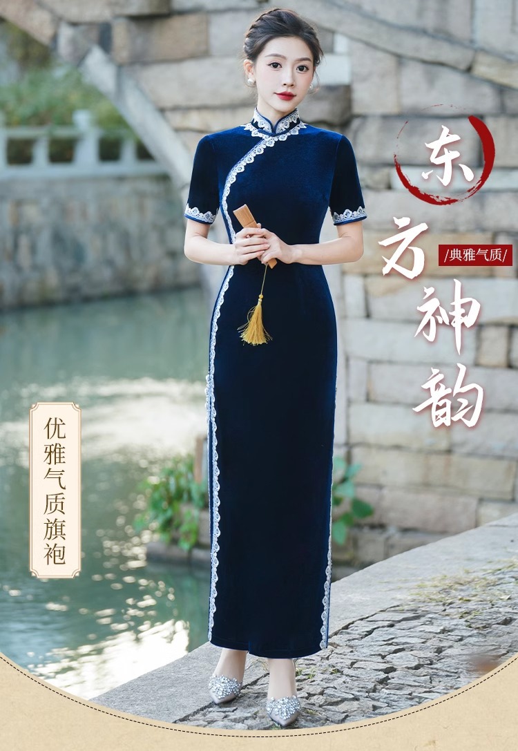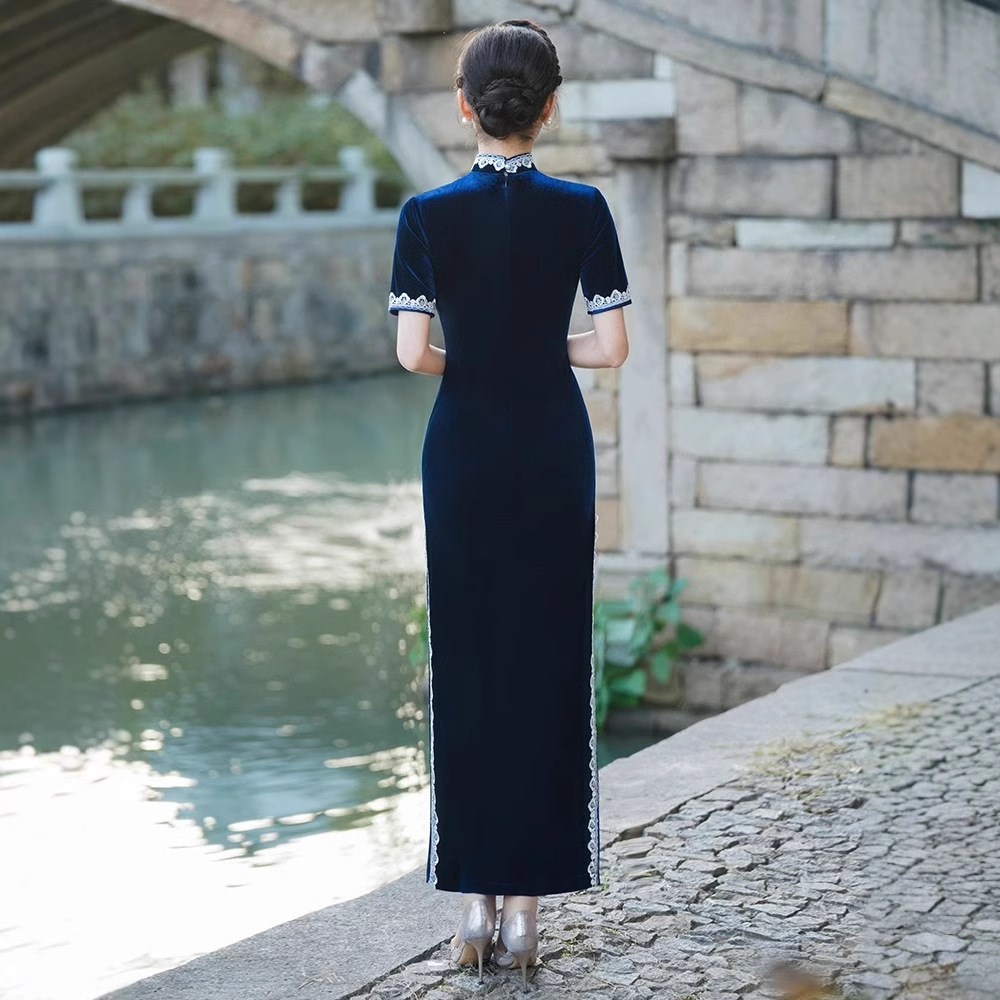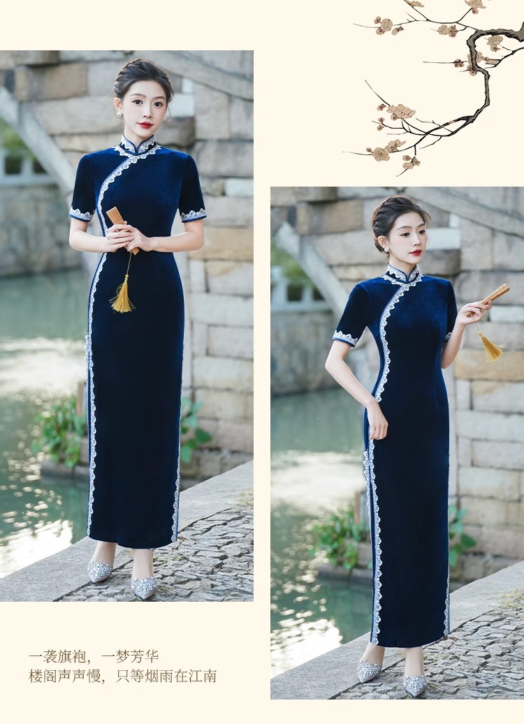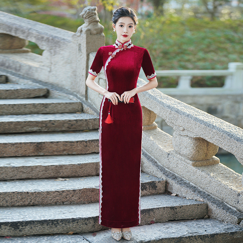 Модное и элегантное бархатное платье-ципао 2026 года, улучшенная модель для повседневной носки и выступлений на подиуме
