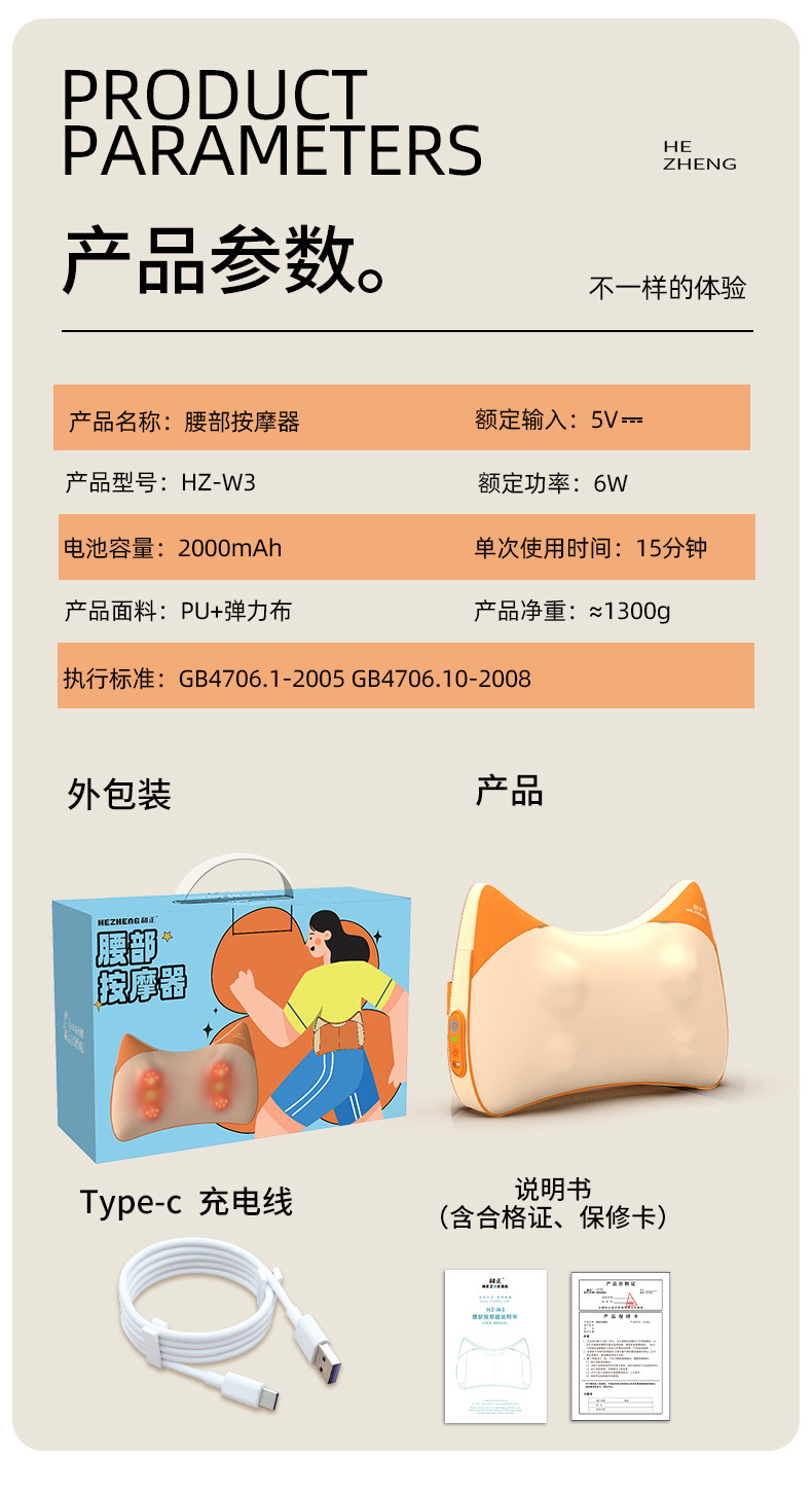 Подушка для массажа шейного и поясничного отдела HZ-W3