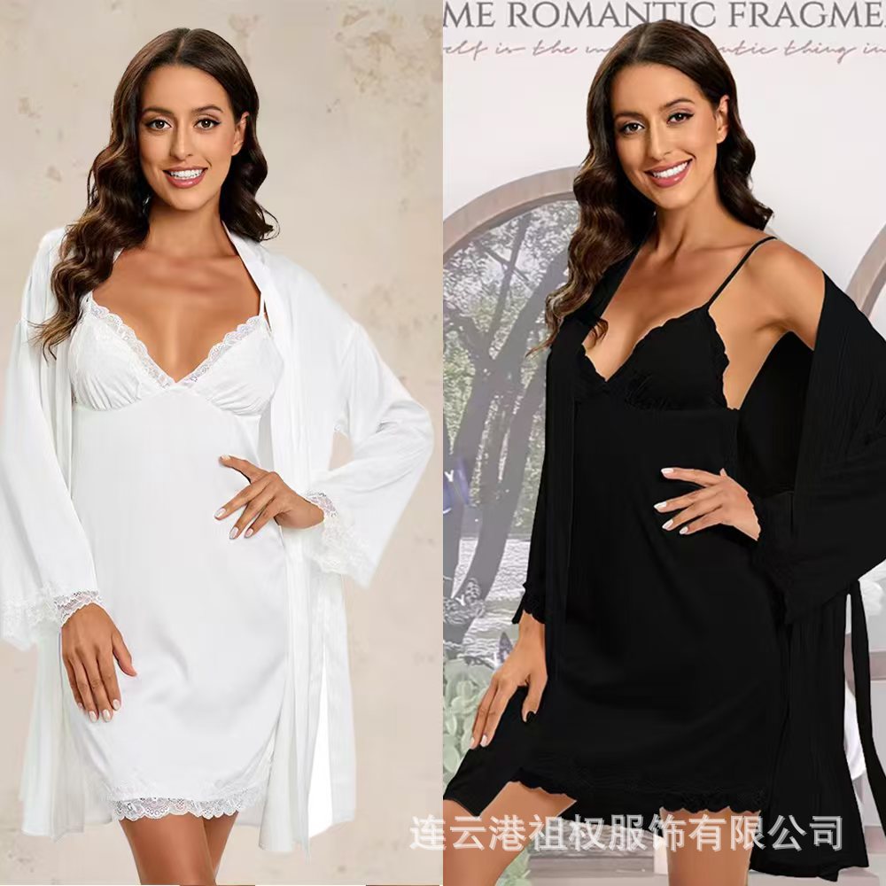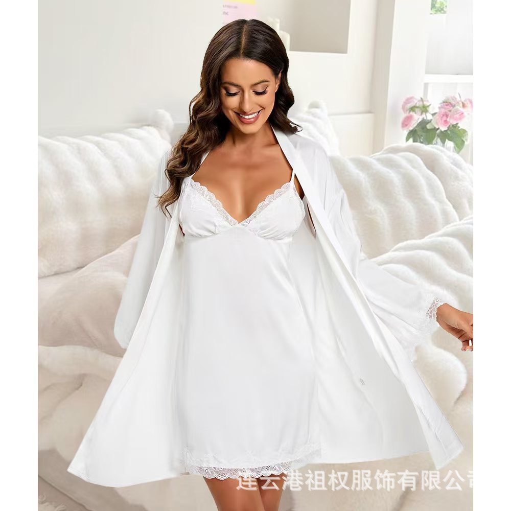 Шелковая пижама для женщин, тонкий комплект из двух предметов, домашняя одежда, опт с Amazon, шелковый бестселлер для трансграничной торговли, с длинными рукавами