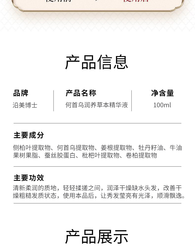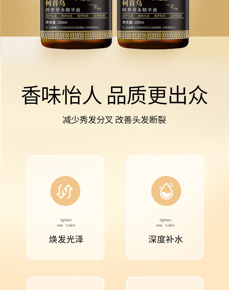Доктор Yanmei He Shouwu Runhanlian травяная сыворотка осветляет блеск и улучшает сухость и естественное мягкое и гладкое обслуживание волос