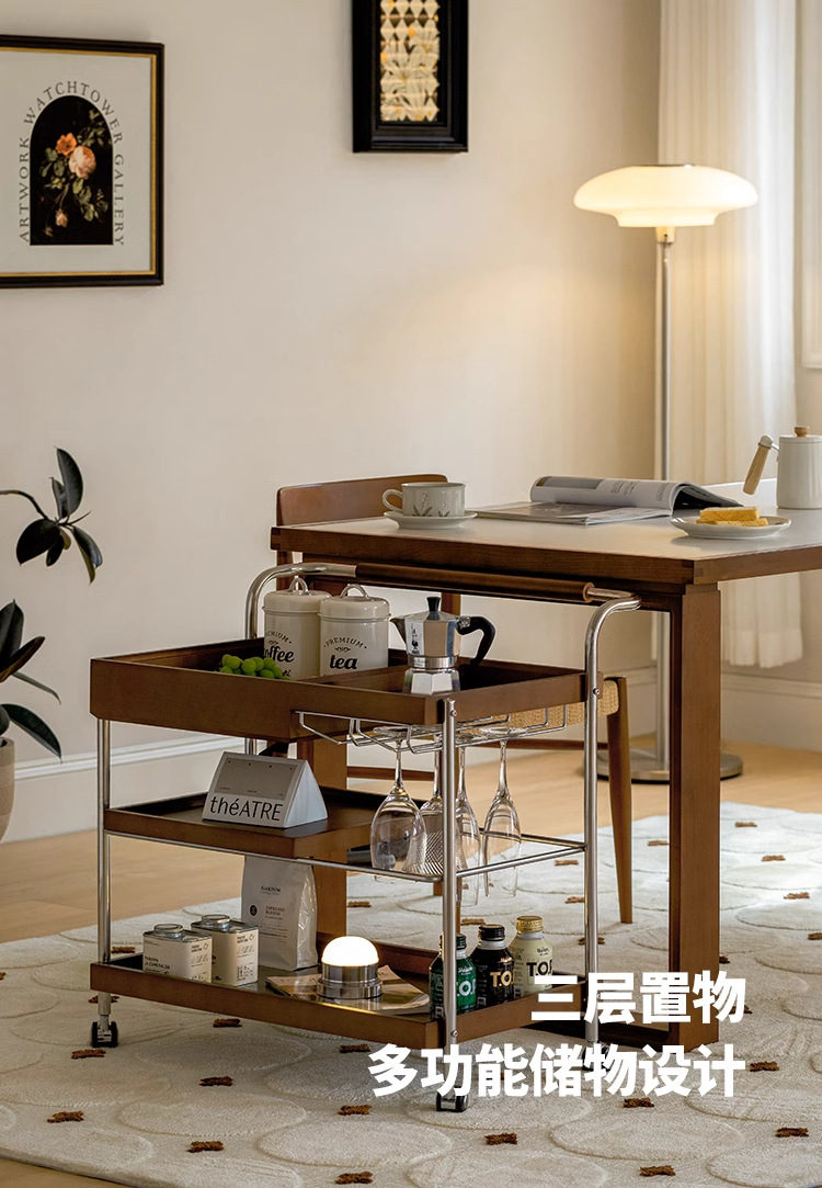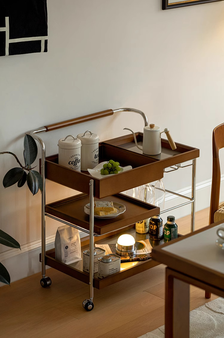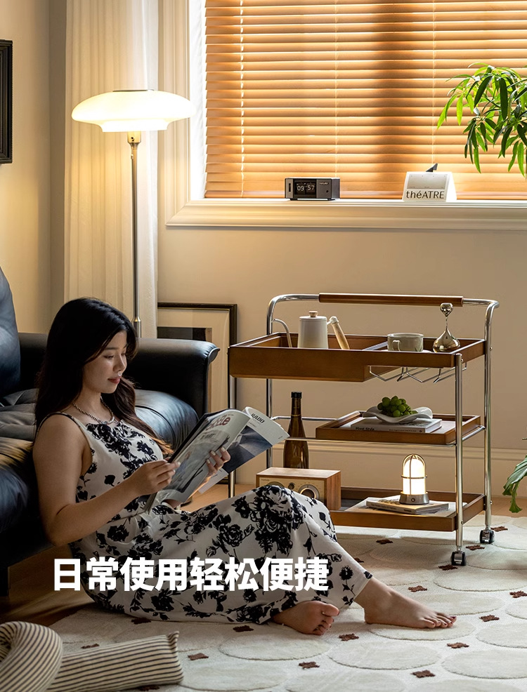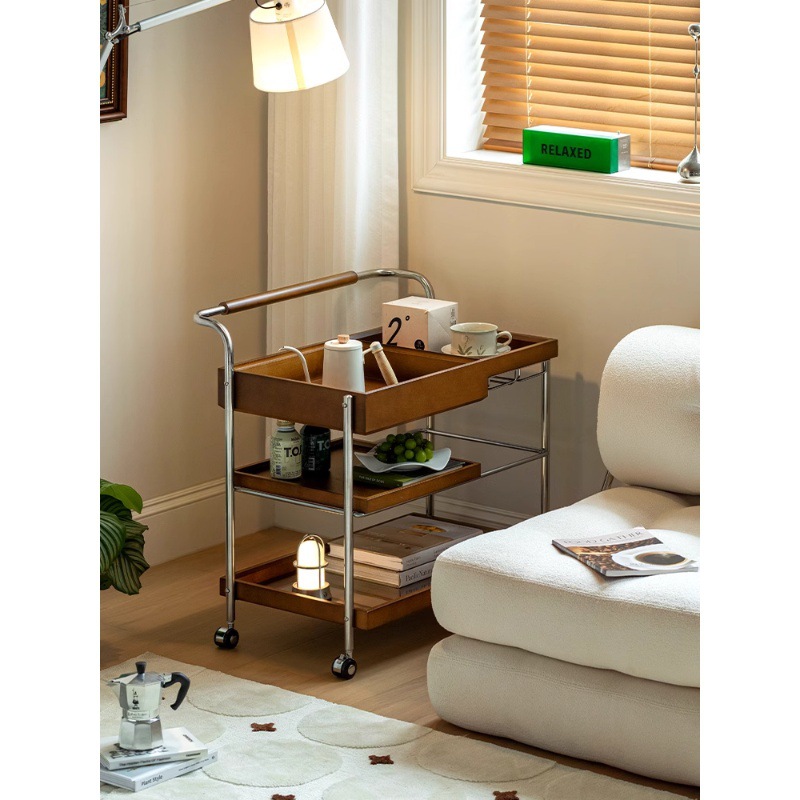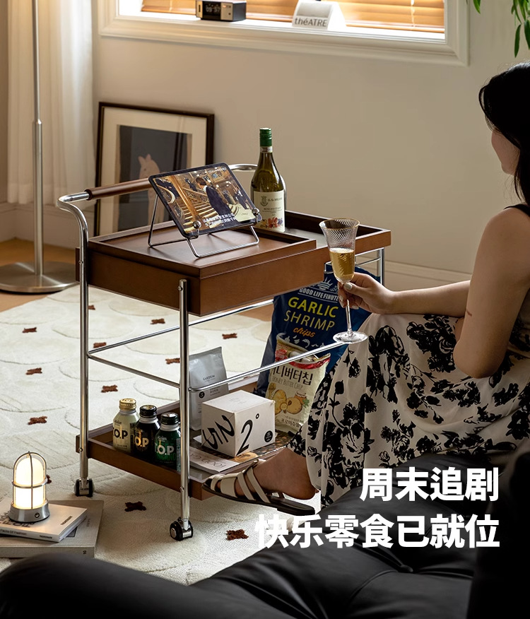Деревянная гостиная подвижный диван несколько маленьких тележек
